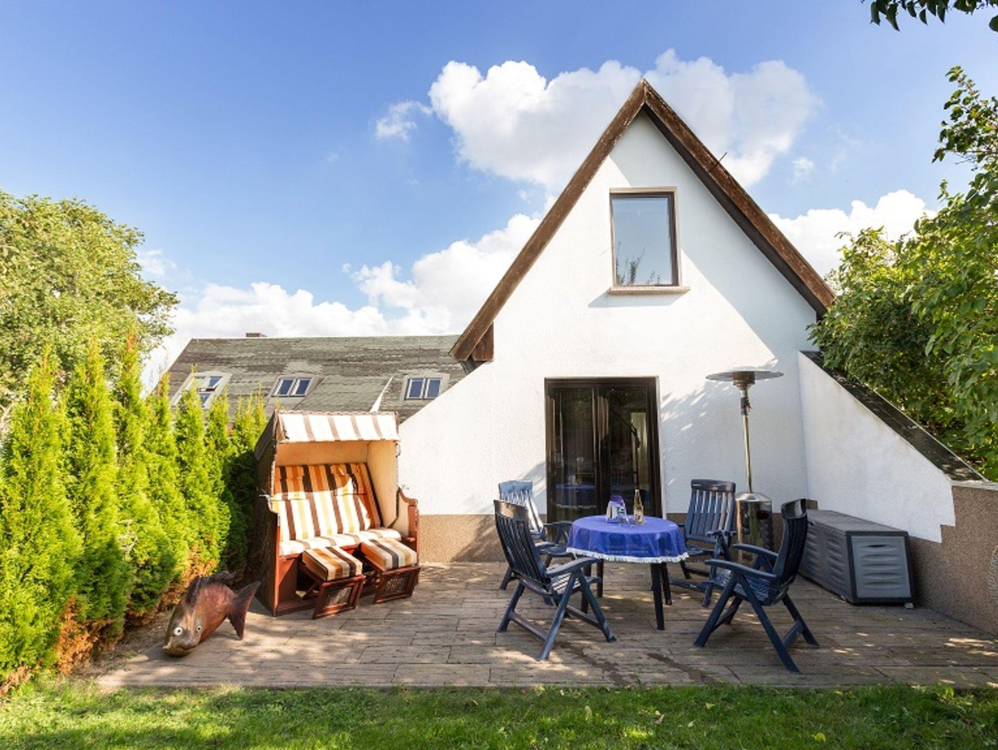 Maritim gestaltete Fischerhütte mit zwei Sonnenterrassen und großem Garten nahe Bergen auf Rügen.