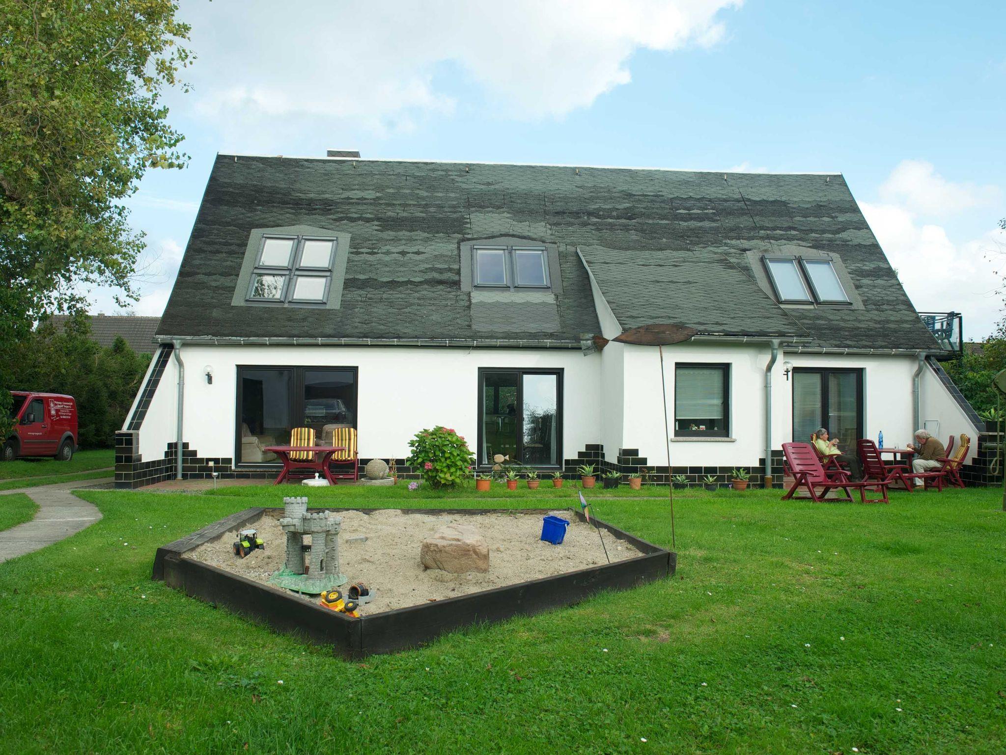 Sie wohnen auf einem 3000 m² großen gepflegten Gartengrundstück mit vielen alten Obstbäumen. Dort befinden sich im Haupthaus der RügenHerz Ferienhausvermietung außerdem noch die Atelierwohnung Dachträume sowie das Piratenhaus und die Fischerhütte. Jedes Quartier hat eine eigene Terrasse mit Wärmestrahlern und Grill . Es gibt ausreichend privaten Platz im Garten sowie Sonnenliegen, genügend Pkw-Stellplätze, einen Wäscheplatz sowie Spielplatz. Die kostenfrei zur Verfügung stehenden Fahrräder können von allen Gästen genutzt und die eigenen Drahtesel untergestellt werden.