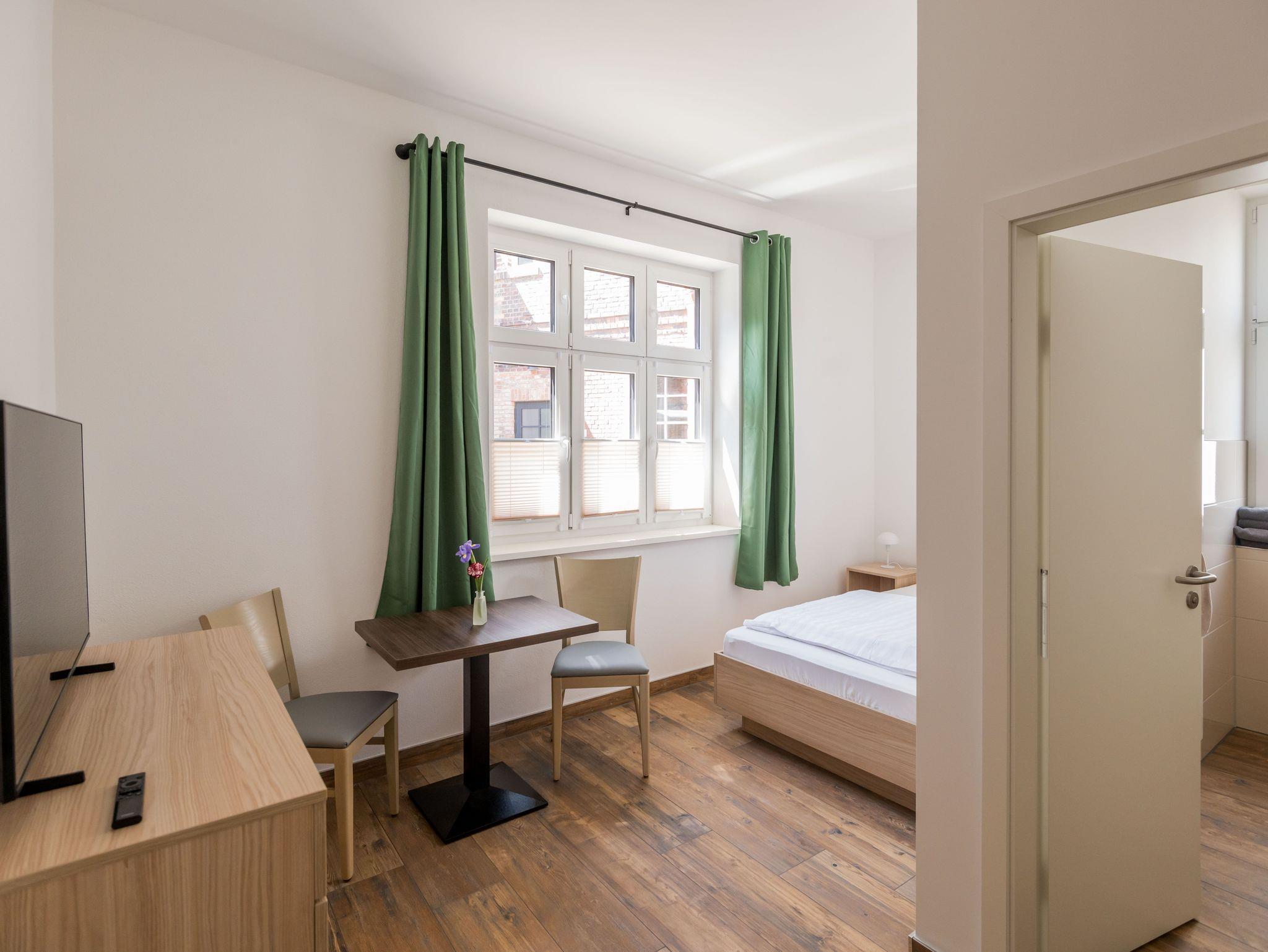 Einzelzimmer im Gästehaus Lokschuppen Pasewalk im Erdgeschoß.