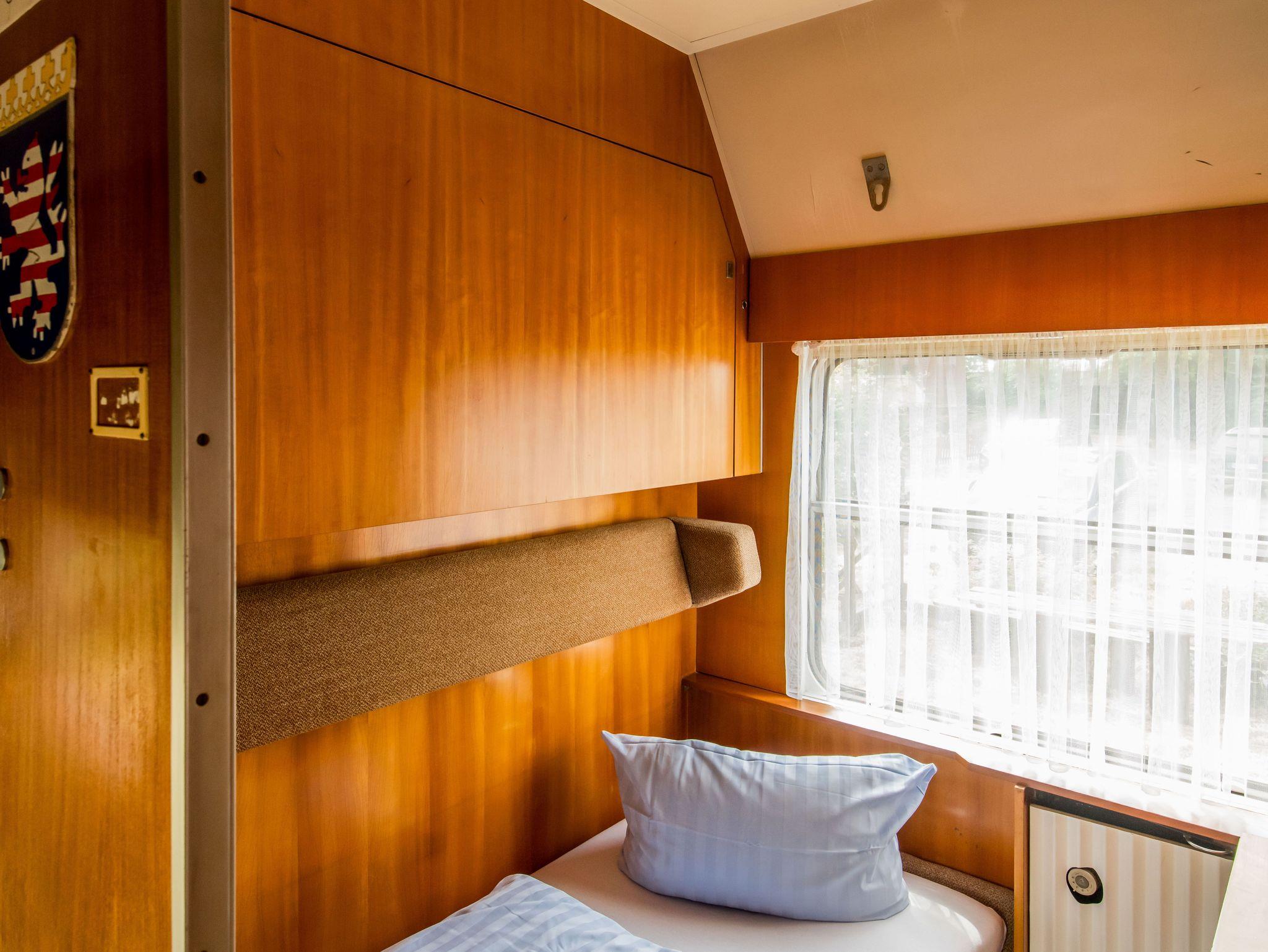 Sie übernachten in Schlafabteilen eines Eisenbahnwagons. Die einzelnen Abteile sind im Schlafwagon als Einzel- oder Doppelkabine buchbar. Die Schlafgelegenheit sind als Etagenbetten ausgelegt.