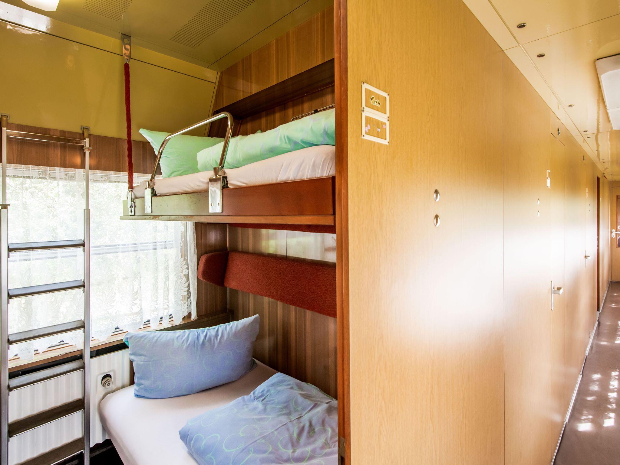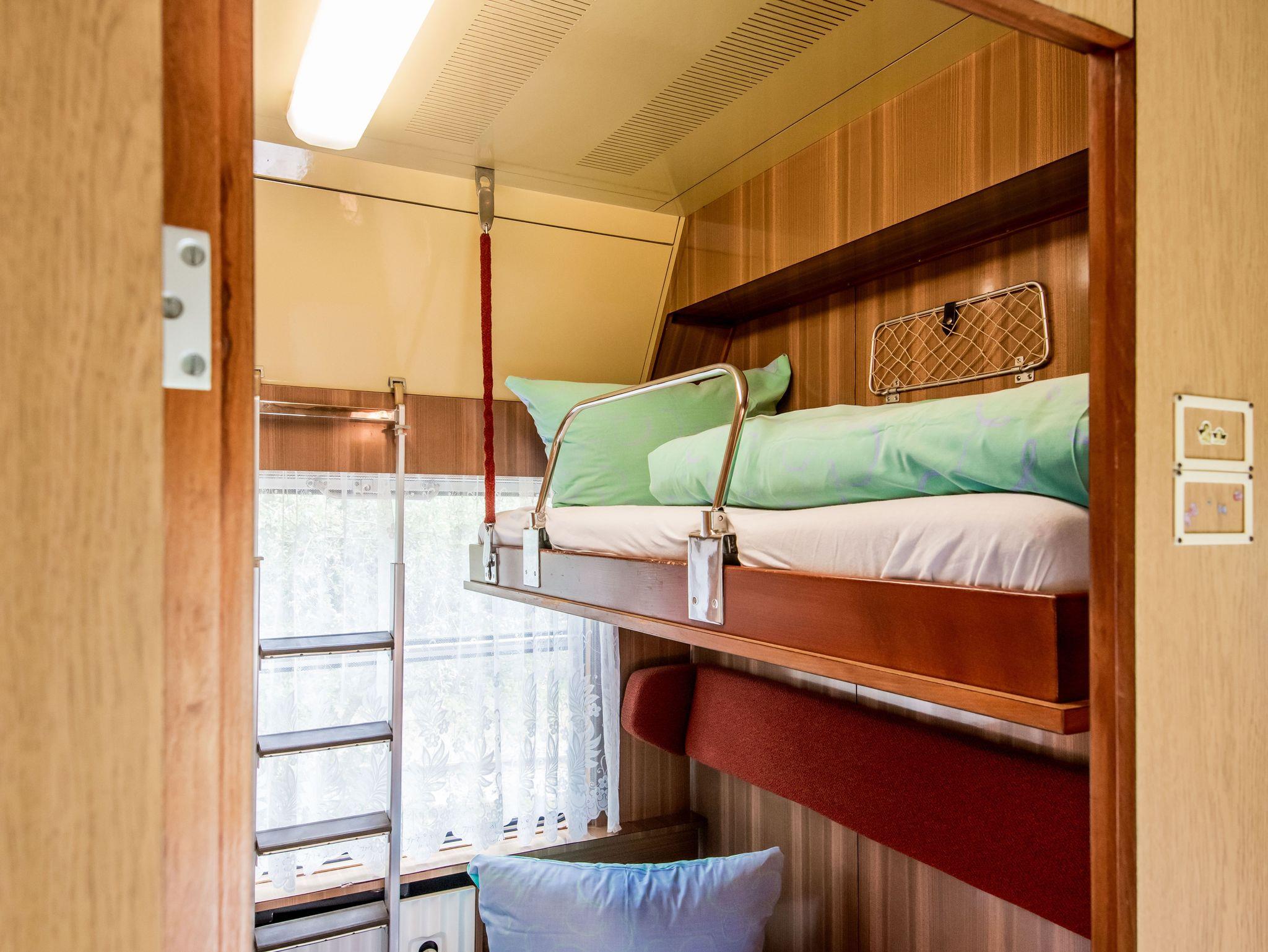 Sie übernachten in Schlafabteilen eines Eisenbahnwagons. Die einzelnen Abteile sind im Schlafwagon als Einzel- oder Doppelkabine buchbar. Die Schlafgelegenheit sind als Etagenbetten ausgelegt.