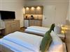 Mit zwei Einzelbetten bzw.Doppelbett getrennt stellbar und einer Pantry-Küche sowie einem Badezimmer mit bodenebener Dusche ist das großzügige Studio ausgestattet.