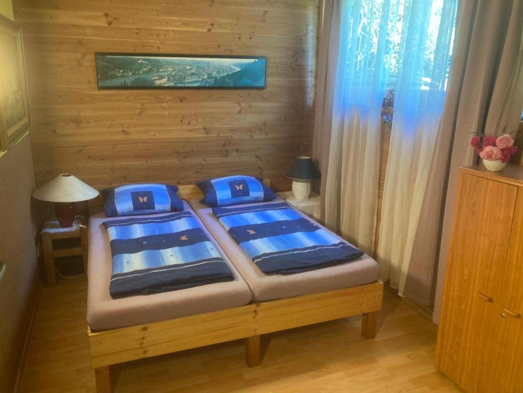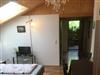 Großes, helles Zimmer mit Doppelbett und in einem kleinen Nebenraum ein zusätzliches französisches Bett (150 cm). Sanitär-Anlagen mit Badewanne.