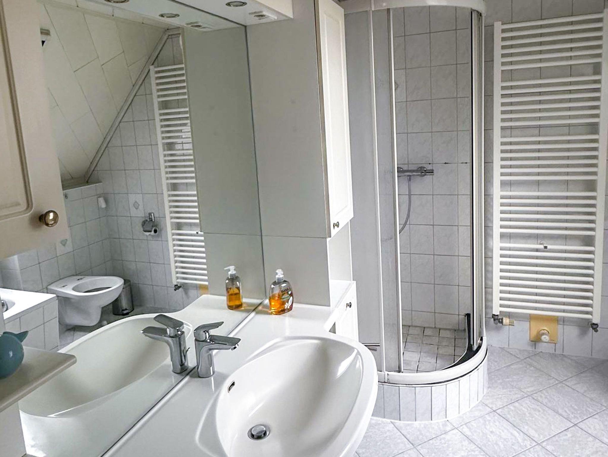 Das Bad verfügt über eine Dusche.