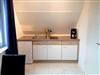 Das Apartment besitzt eine Küchenzeile mit einem 2er Cerankochfeld, Kühlschrank mit Eisfach, Kaffeemaschine, Wasserkocher und Toaster. Alle Geräte sind in bestem Zustand.