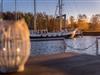 Modernes Hausboot in Peenemünde, 10 m von der Ostsee entfernt, mit Terrasse und Komfort für vier Gäste.