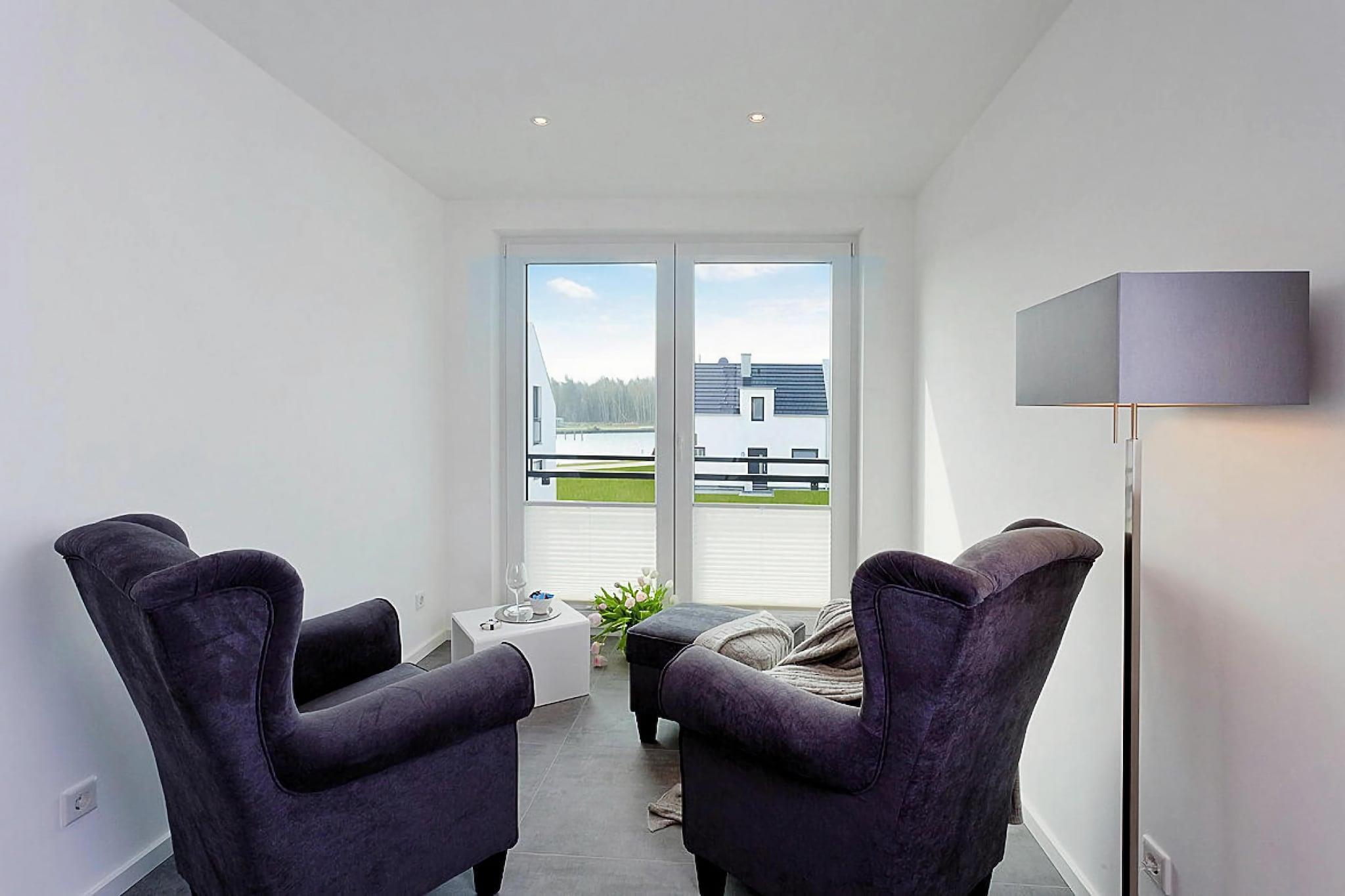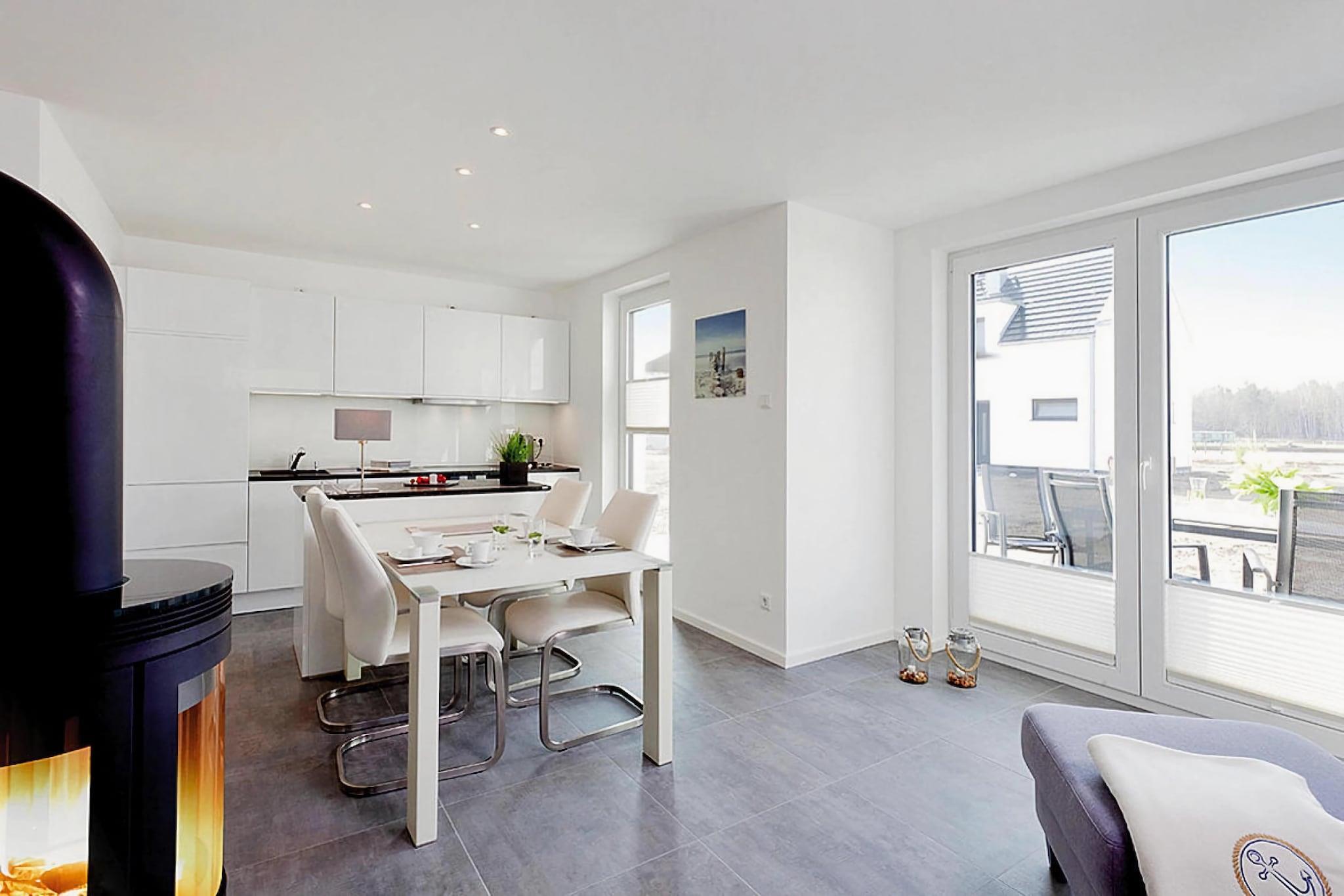 Modernes Ferienhaus am Yachthafen in Peenemünde mit Kamin und teilweisem Meerblick, ideal für erholsame Tage auf Usedom.