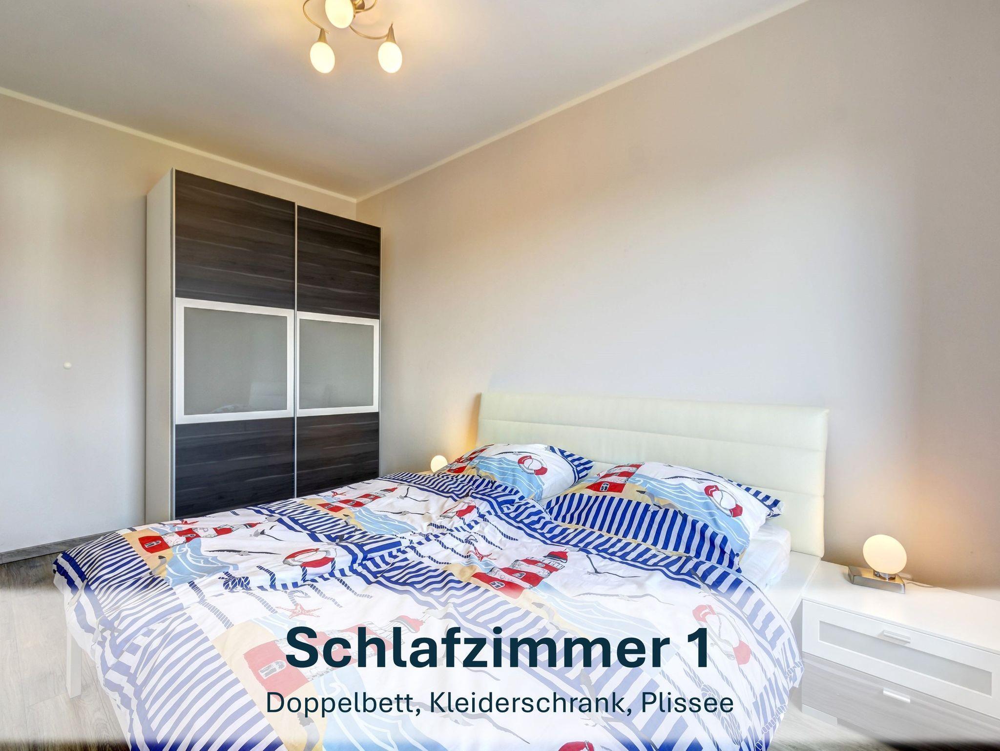 Die Wohnung verfügt über zwei separate Schlafzimmer: eines mit Doppelbett (2×90x200cm) und eines mit zwei Einzelbetten. Das moderne Badezimmer ist mit einer Dusche ausgestattet. Vom Wohnbereich aus gelangen Sie auf den Balkon, der zum Entspannen an der frischen Luft einlädt.