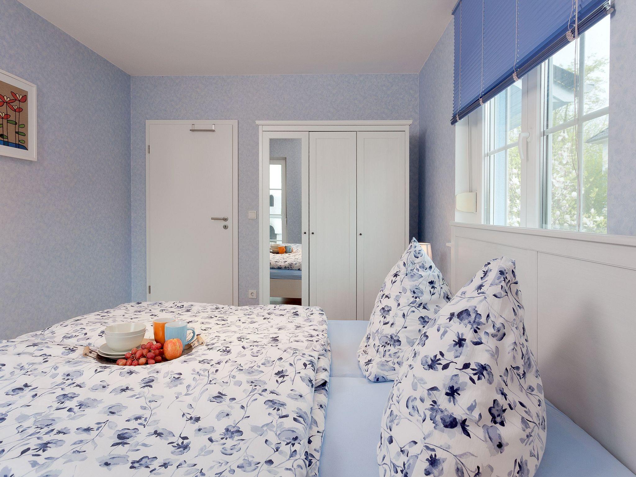 Die Räumlichkeiten sind aufwändig und sehr gemütlich gestaltet. Man gelangt über einen großzügigen Flur in zwei Schlafzimmer mit je einem Doppelbett ( 1 x 1,80 m , 1 x 1,60 m breit), einem Kleiderschrank sowie einem Fernseher. In einem Schlafzimmer befindet sich zudem ein kleiner Arbeitsplatz. Für die kleineren Gäste steht ein Kinderreisebett (ohne Bettzeug) und ein Hochstuhl zur Verfügung. Eine weitere Schlafmöglichkeit befindet sich im Wohnzimmer (zwei Schlafcouches, Liegefläche 121 x 194 cm breit).