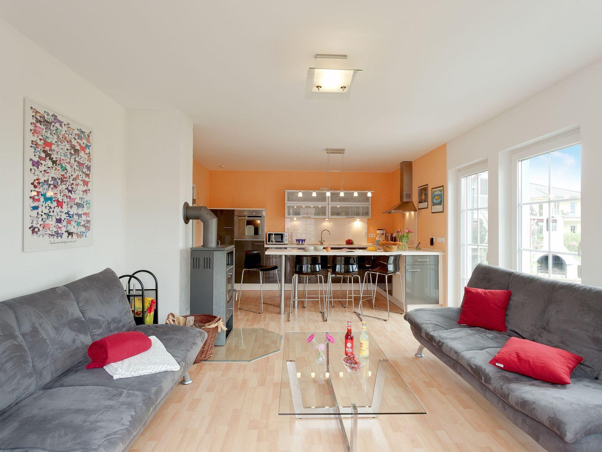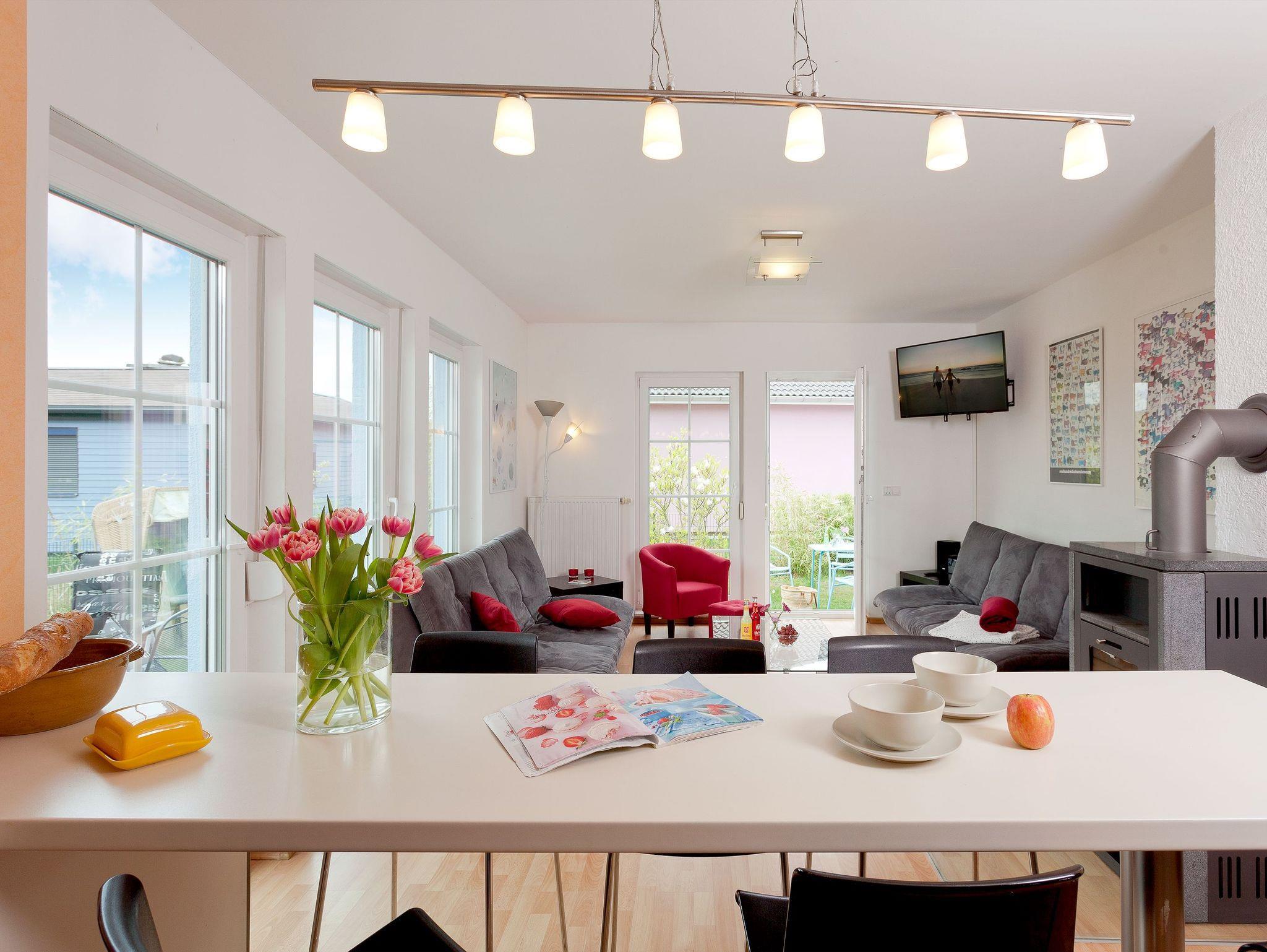 Gemütliches Ferienhaus mit Kamin und Terrasse nahe Peenemünder Hafen, ideal für Familien und Ruhesuchende.
