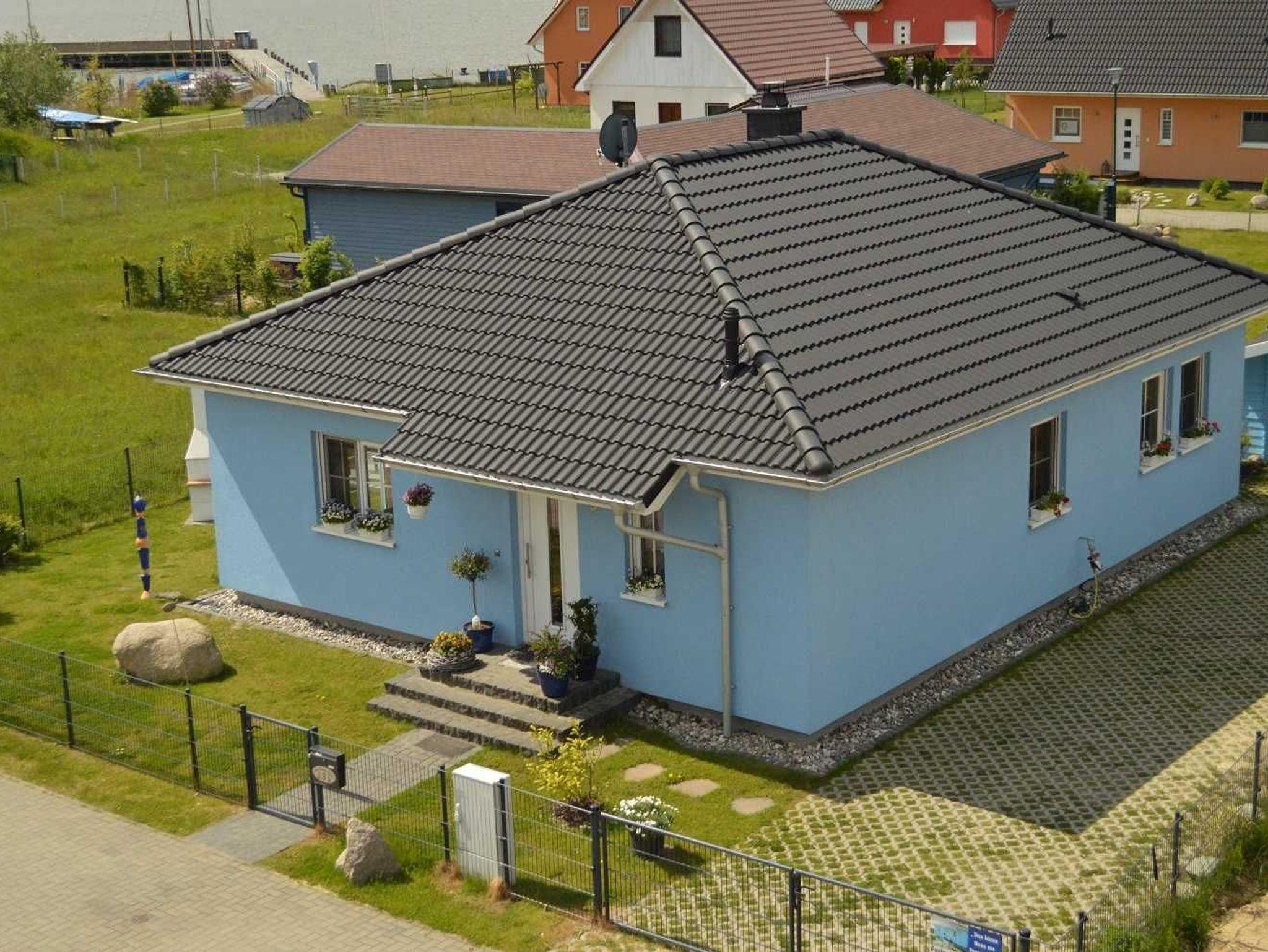 Das Ferienhaus mit nordisch blauer Fassade und 83 qm Wohnfläche ist im Jahr 2012 fertiggestellt . Es liegt in einem neu entstehenden und ständig wachsenden Ferienhausgebiet ca. 300 m vom Haupthafen und dem Seglerhafen entfernt im eingezäunten, eigenen Grundstück mit grosser Terrasse, die mit einem Windschutz umgeben ist und PKW-Stellplatz an einer Spielstraße.