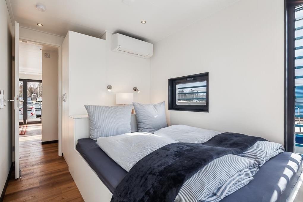 Das Hausboot ist ein floating 44. Es besitzt 2 Schlafzimmer mit je einem Doppelbett. Das Badezimmer ist mit einer Dusche ausgestattet und einem separaten WC. Der Wohn- und Essbereich ist ein stilvoll eingerichteter Raum mit einer dreiseitigen Glasfront. Die Schlafcoach sorgt für jede Menge Gemütlichkeit.