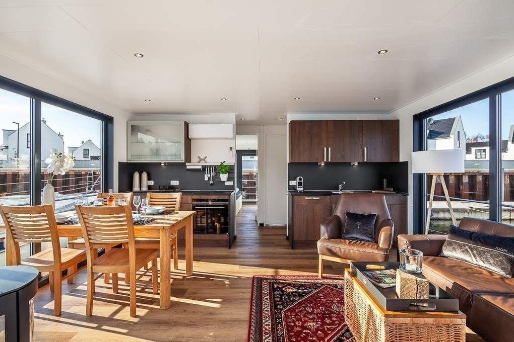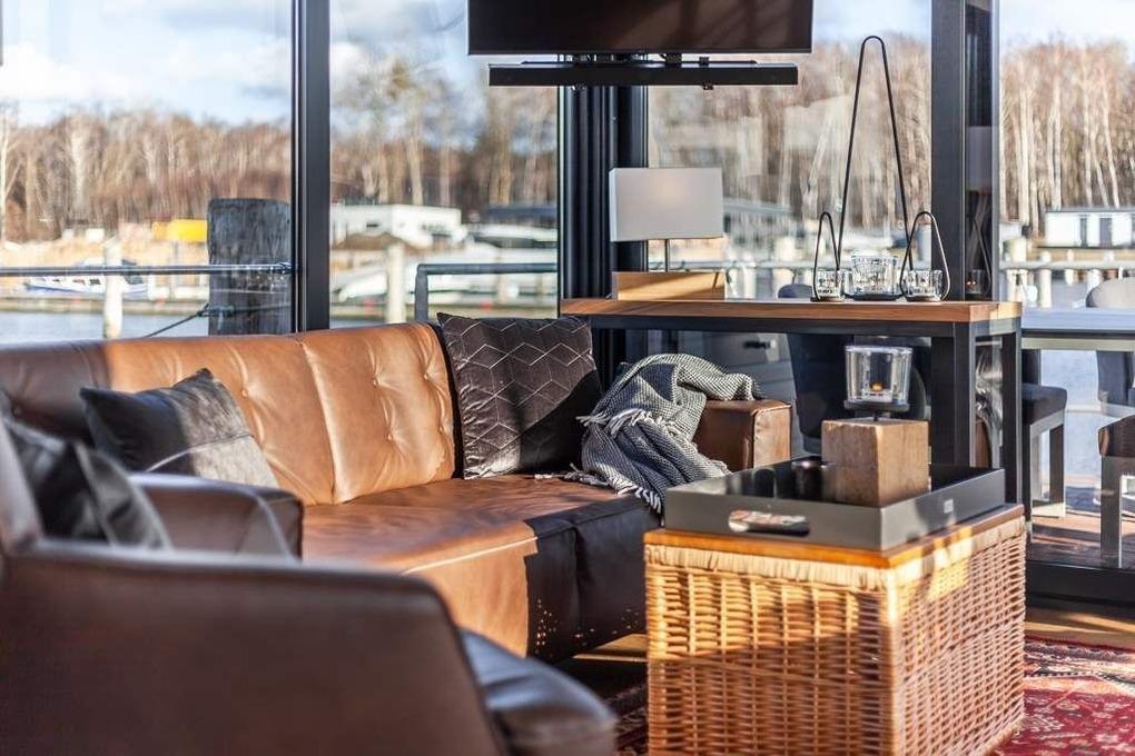 Luxuriöses Hausboot mit Terrasse und Seeblick