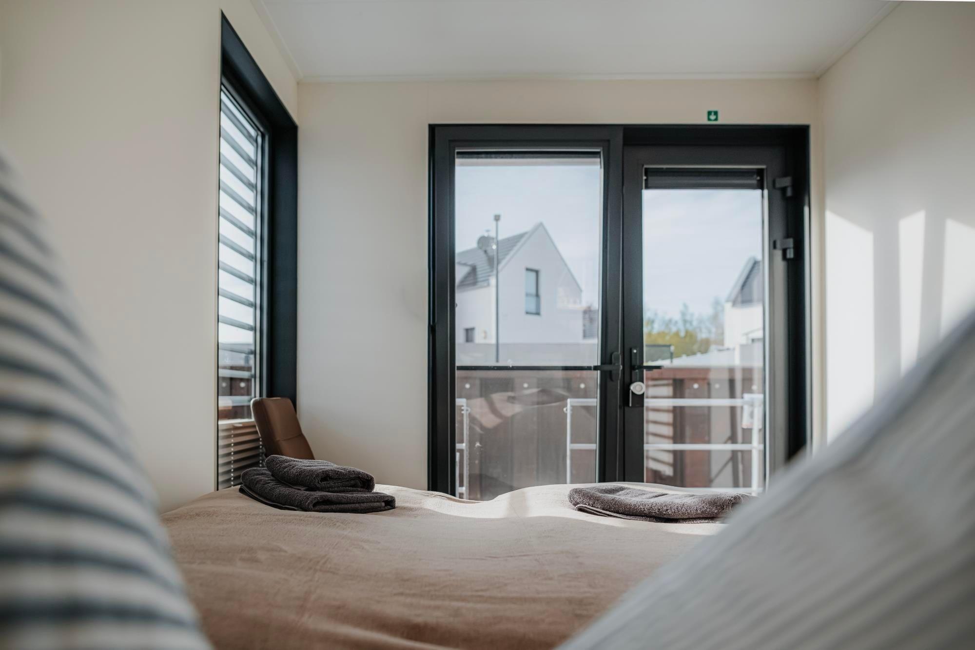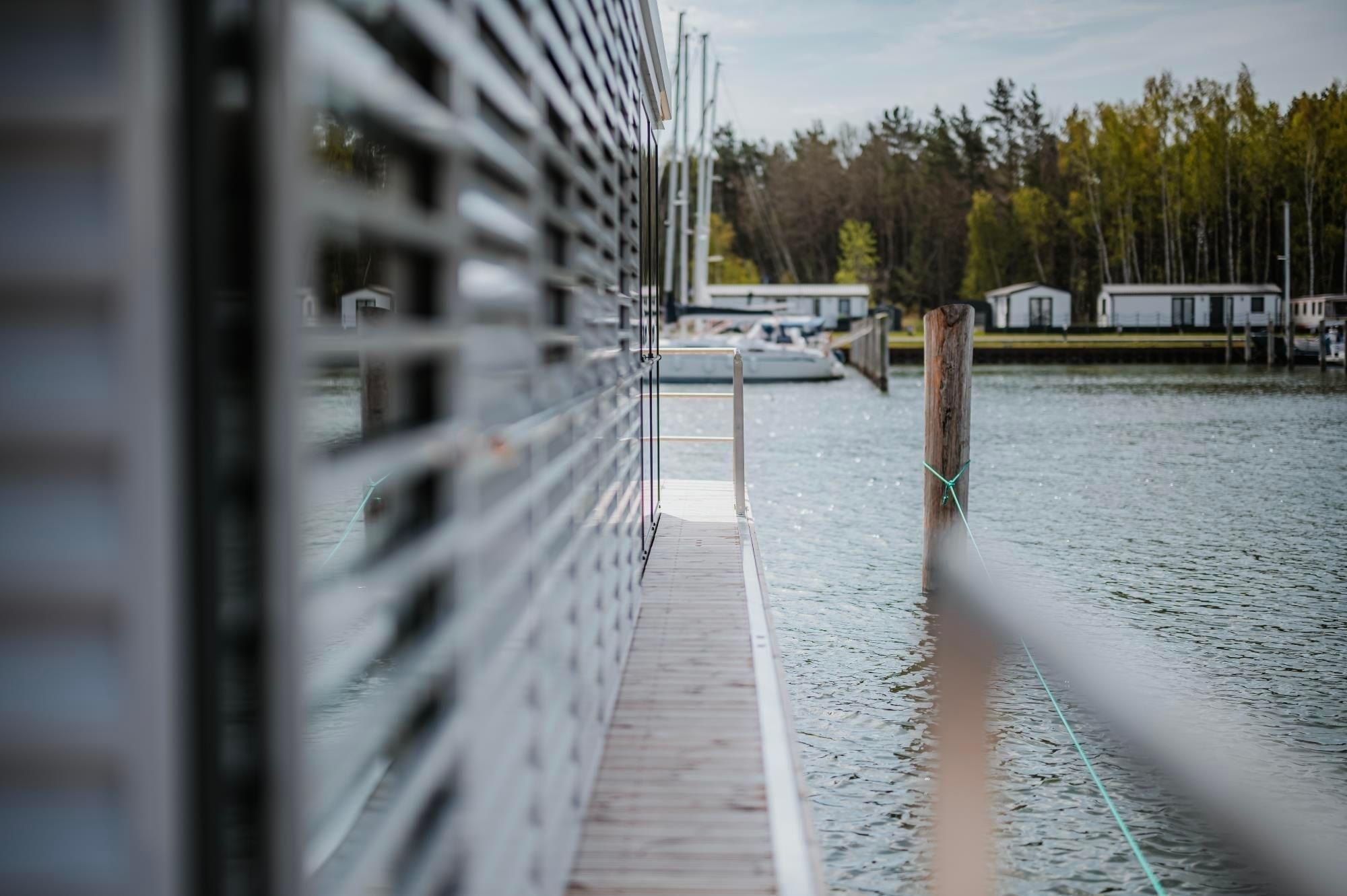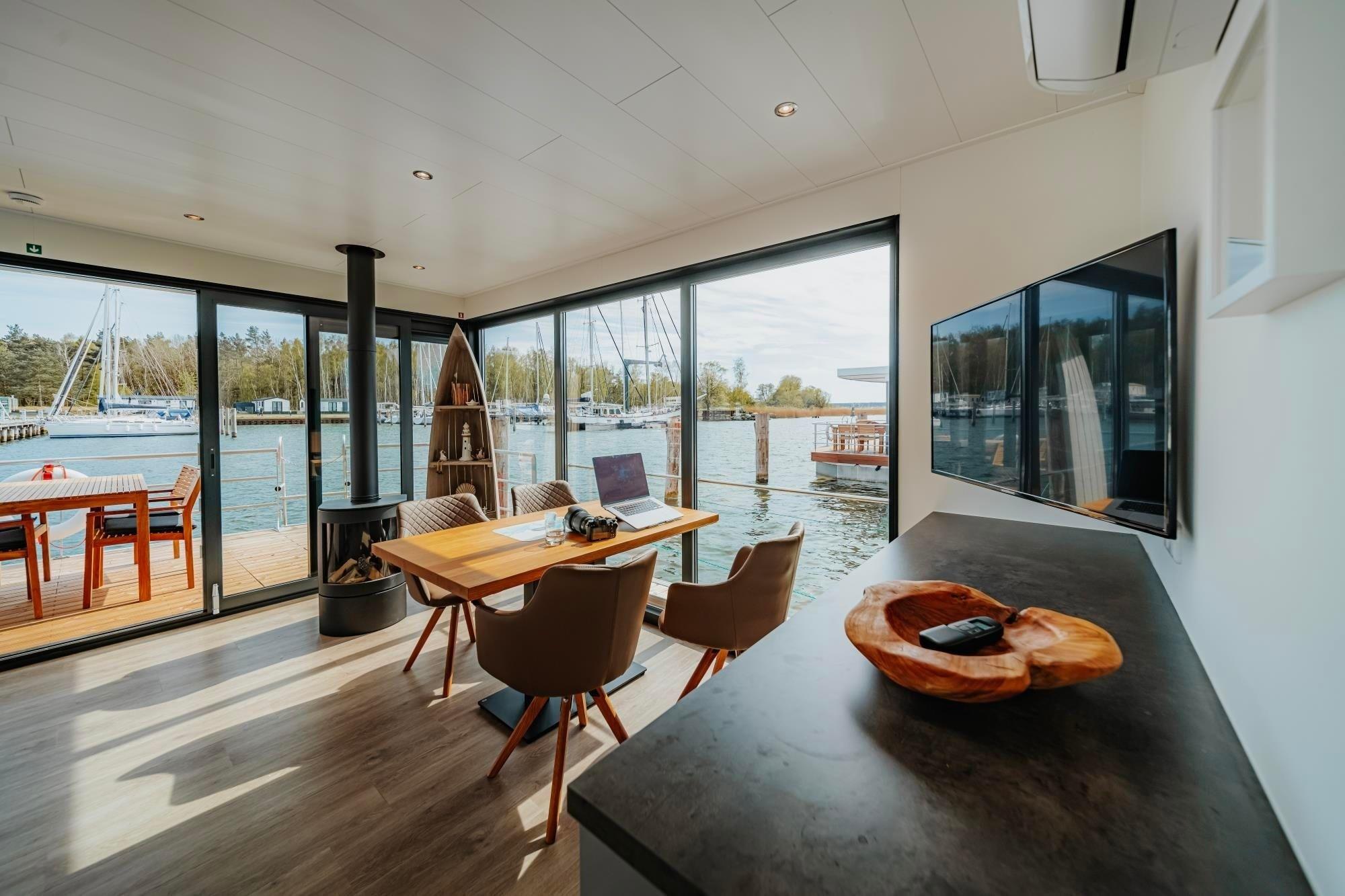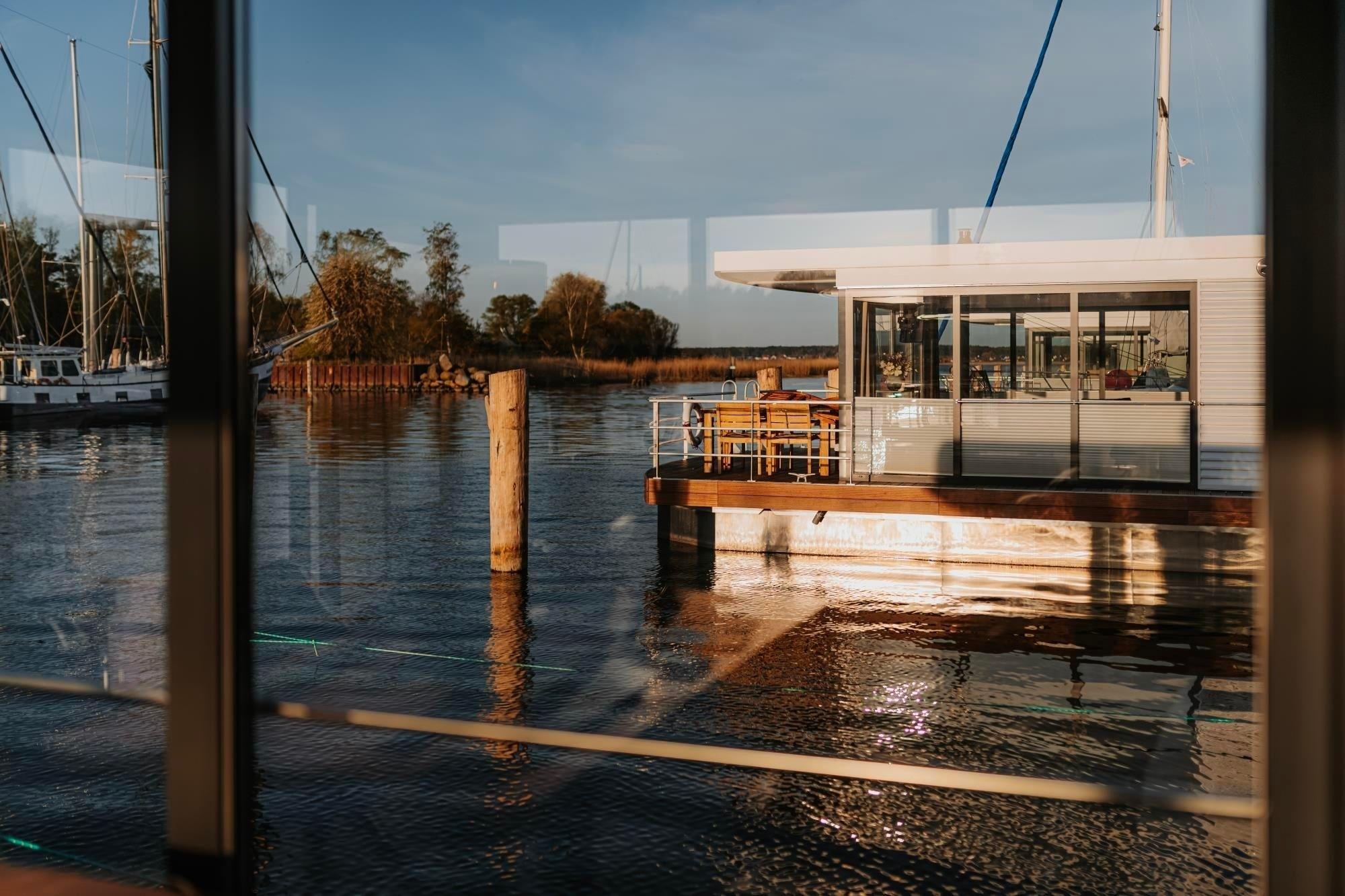 Erleben Sie luxuriösen Komfort auf dem Hausboot "Trinity" mit Seeblick im Yachthafen Peenemünde.