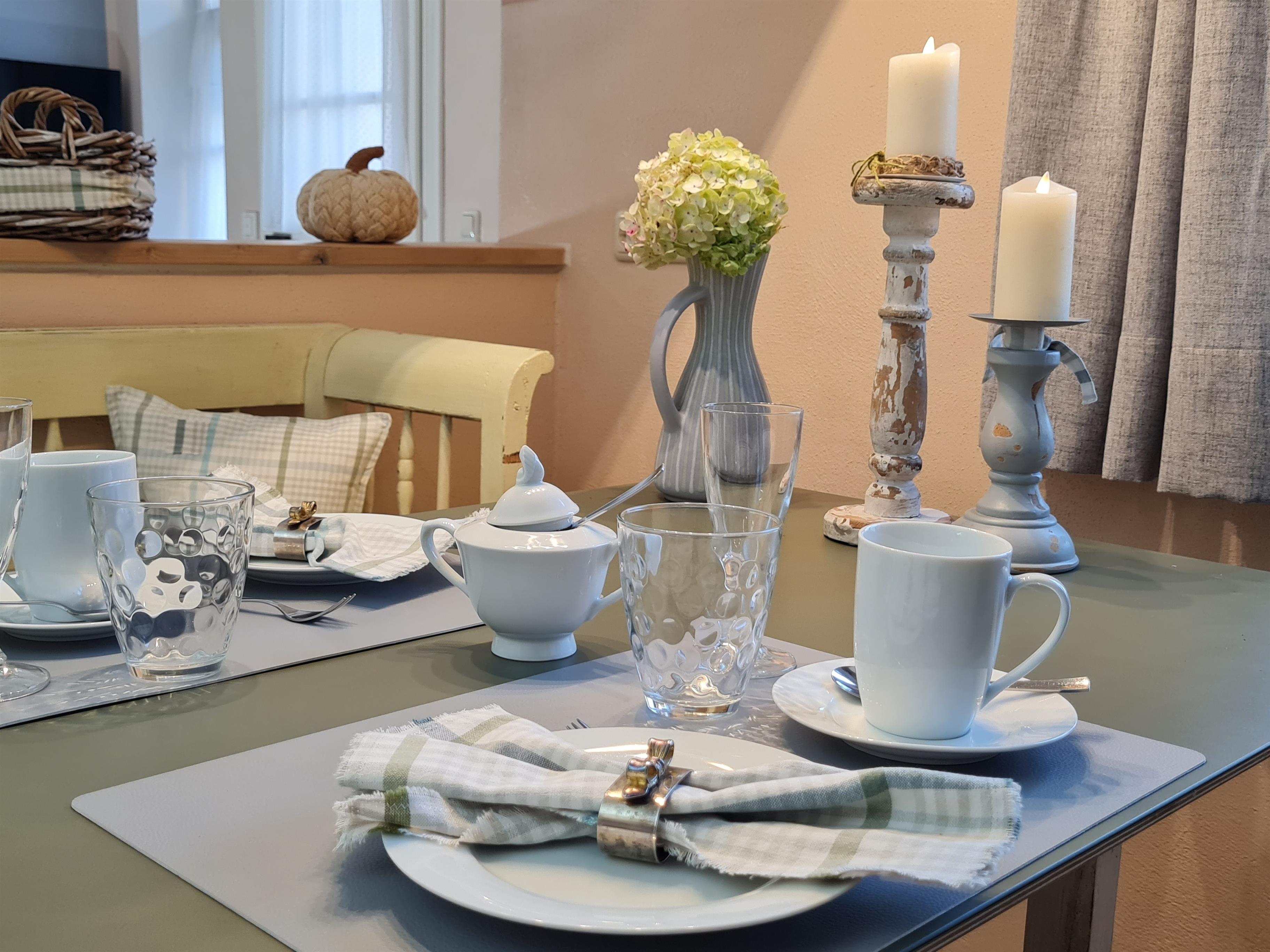 Eine komplett eingerichtete und moderne Küche mit gemütlicherm Sitzplatz lässt den Tag beginnen!