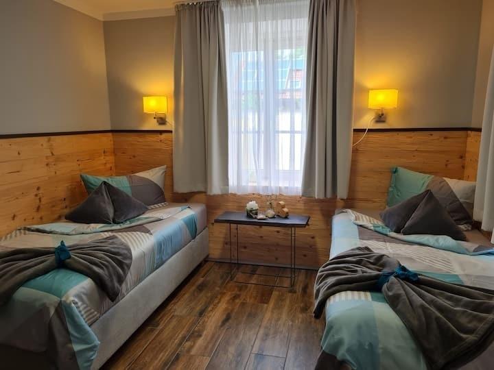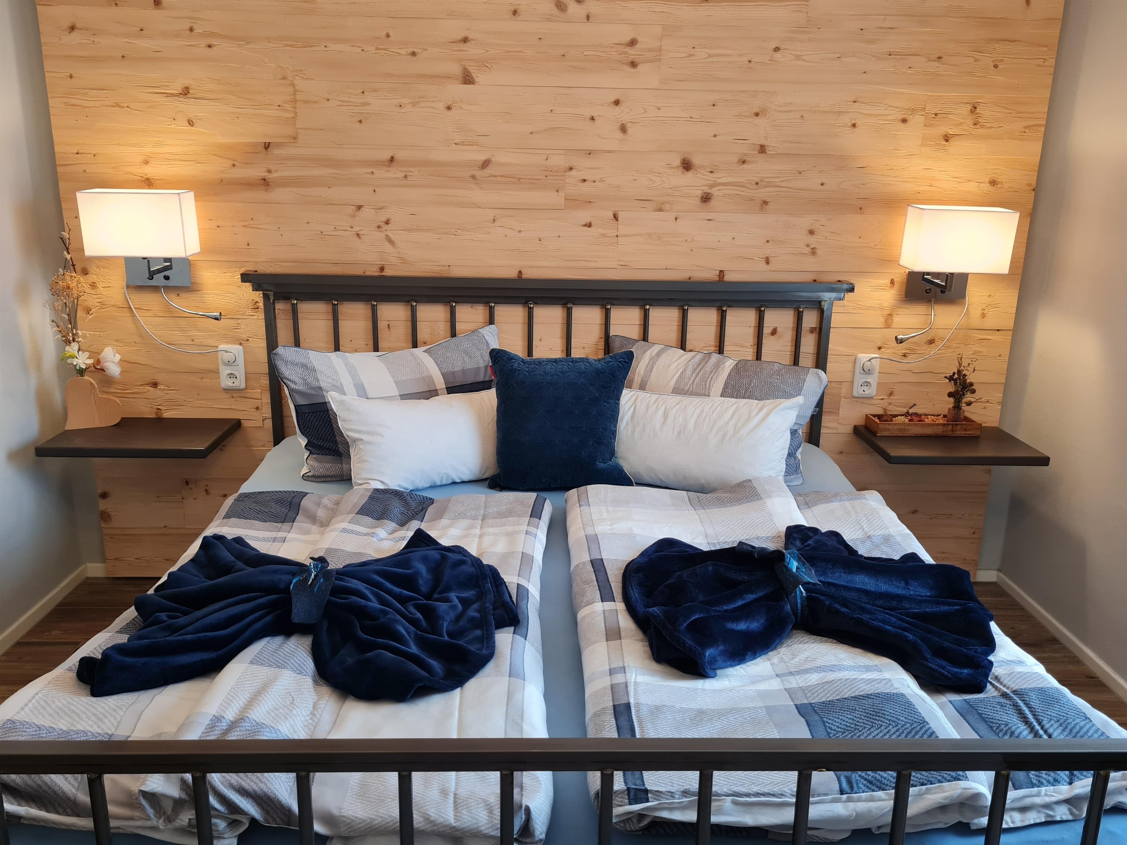 Zwei individuell ausgestattete Schlafzimmer mit neuen und komfortablen Betten und Matratzen bieten genügen Platz für 4 Personen.