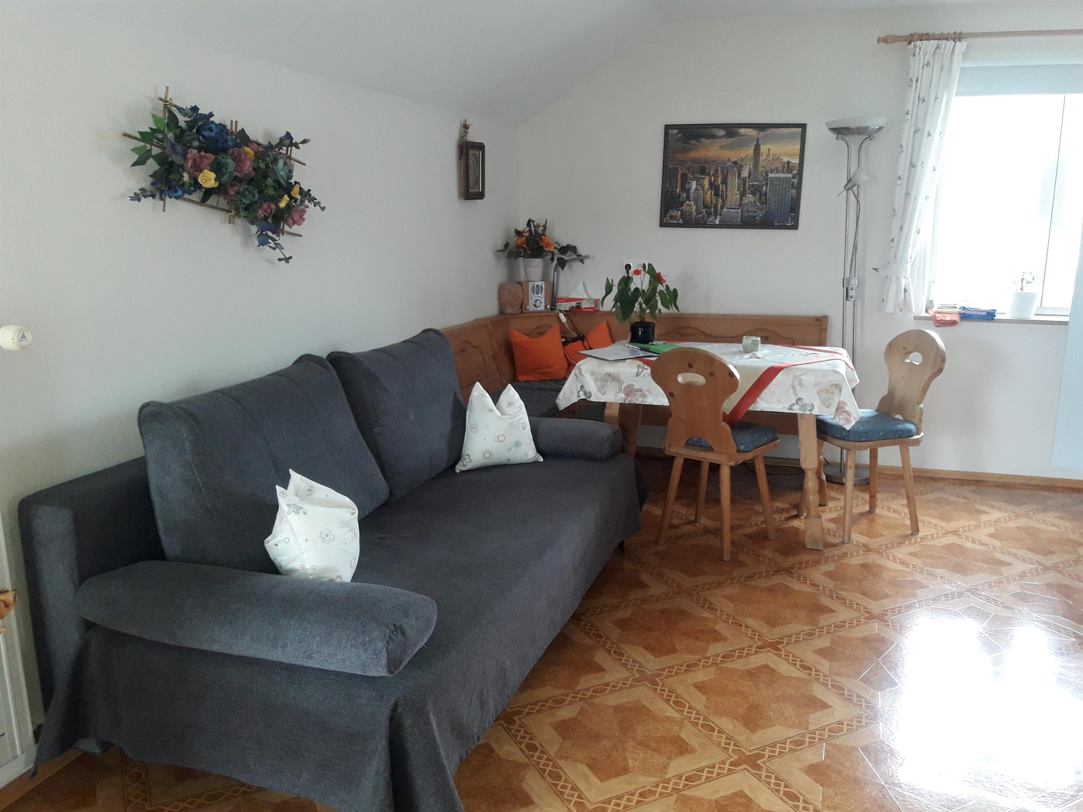 Gemütlich eingerichtete Ferienwohnung mit Südbalkon im 1. Stock inklusive Frühstück.Es kann auch als Ferienwohnung ohne Frühstück(Preise auf Anfrage)gemietet werden. Zusätzlich zum Schlafraum mit großem Doppelbett steht ihnen ein gemütlicher Wohnraum mit Küchenzeile, Sitzecke und Liegecouch (Schlafmöglichkeit für