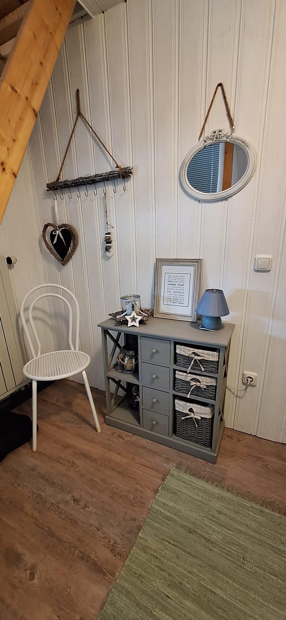 Um Wertsachen aufbewahren zu können, steht ein Tresor zur Verfügung. Für Gäste, die gerne lesen, ist ein gemütlicher Relax-Stuhl mit Leselampe im Wohnzimmer zu finden. Die Couch kann zu einem komfortablen Gästebett (1,6x2m) umgebaut werden. Außerdem befindet sich der kleine Balkon nach Süden am Wohnzimmer. Das Doppelbett im Schlafzimmer ist 2x2m groß, der Lattenrost kann am Kopf- und Fußteil in der Höhe verstellt werden. In der gemütlichen Küche befindet sich die Essgruppe, eine moderne Einbauküche ist mit Geschirrspüler, Mikrowelle und allem Nötigen ausgestattet. Neben der Küche liegt das Bad mit Dusche/WC (Fön vorhanden). Bettwäsche und Handtücher stellen wir unseren Gästen zur Verfügung. Ein SAT-TV steht Ihnen im Wohnzimmer und im Schlafzimmer zur Verfügung.