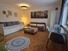 Der lichtdurchflutete Wohnbereich lädt mit einer bequemen Schlafcouch (1,60 x 2 m), Kleiderschrank, einer Kommode mit vier Schubladen, Essecke, Sofa und TV zum Wohlfühlen ein. Von hier aus gelangen Sie über einen kurzen Flur in das ruhige Schlafzimmer, ausgestattet mit einem gemütlichen Doppelbett (1,80 x 2 m) und einer weiteren großzügigen Kommode.