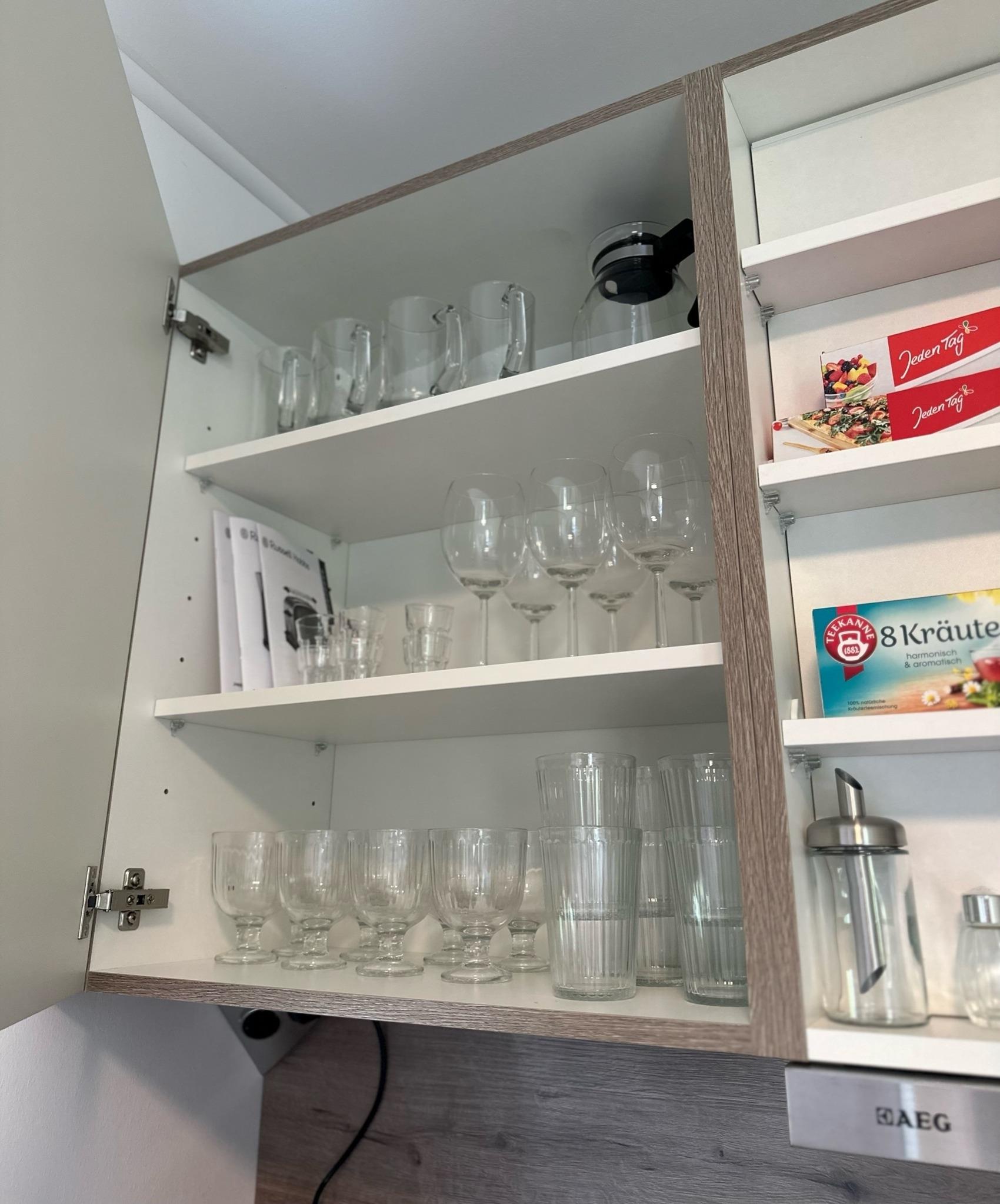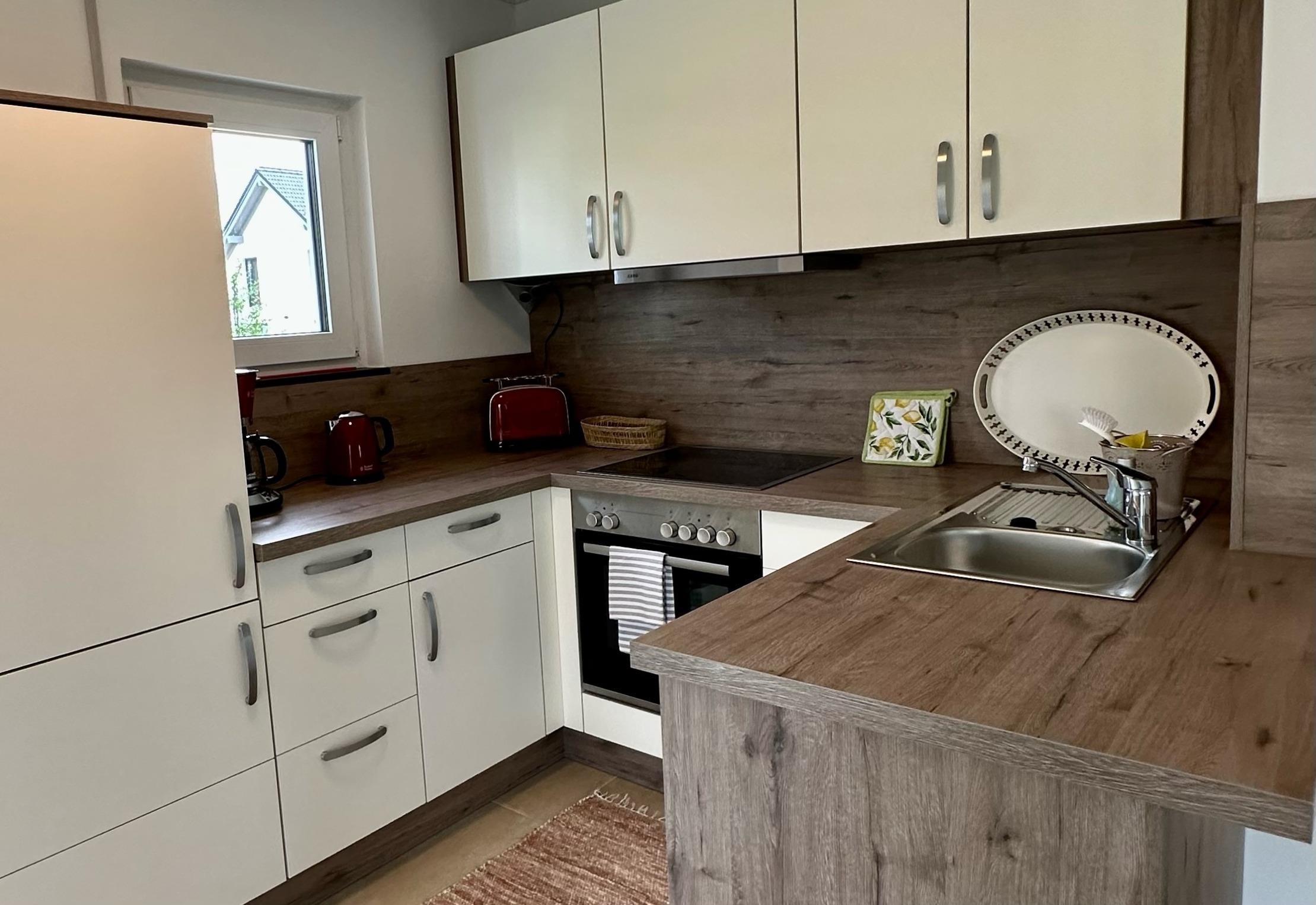 Die hübsche kleine Küche ist voll ausgestattet mit Backofen, Kaffeemaschine, Toaster, Spülmaschine etc. - Geschirr und Kochutensilien sind vorhanden.