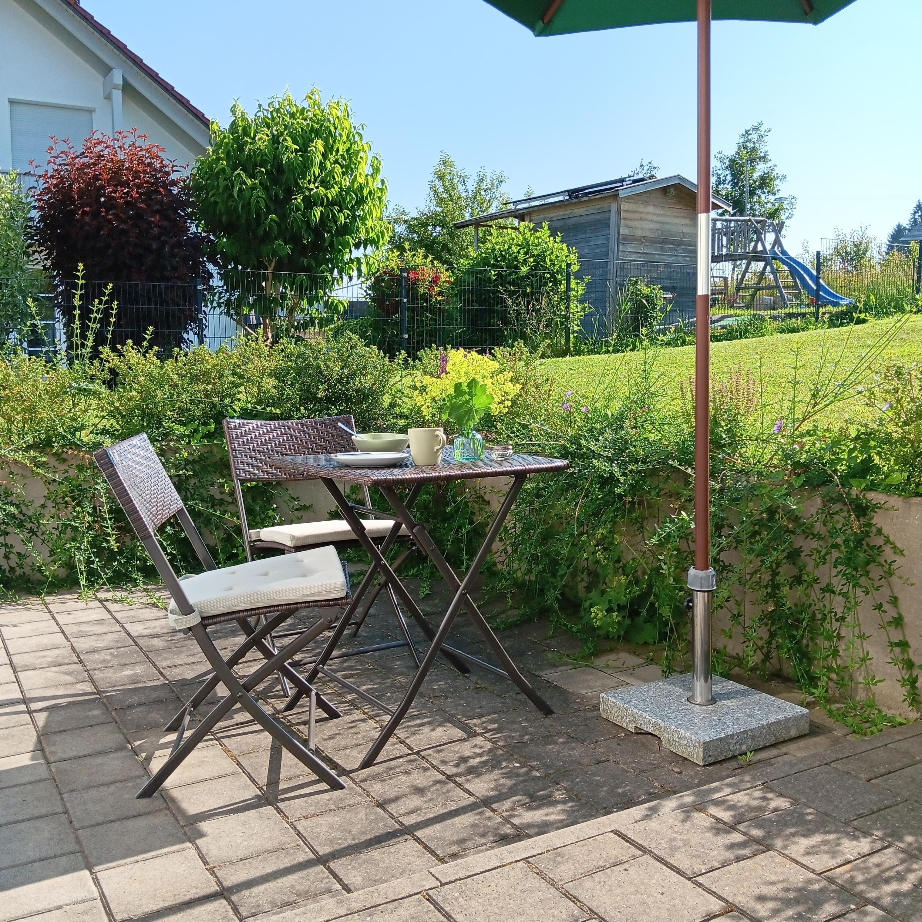 Sehr besonders ist die bezaubernde Ostterrasse mit kleinem Garten. Perfekt für ein schönes Frühstück am Morgen oder ein gemütliches Gläschen Wein am Abend.