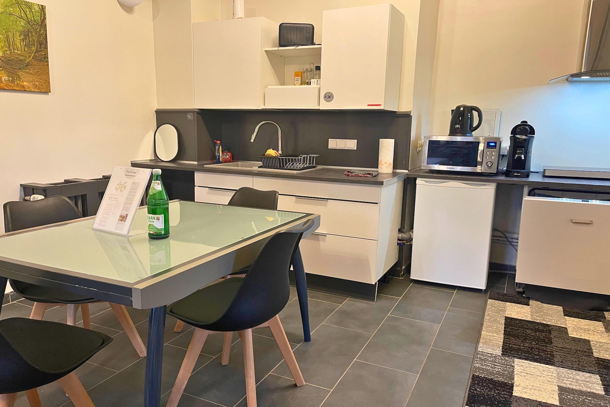 Dieses helle und funktionale Apartment im ruhigen Dorf Pellingen ist ideal für bis zu vier Gäste. Ob Sie eine kleine Familie, ein Paar auf der Suche nach mehr Platz oder gemeinsam reisende Freunde sind – dieses Apartment bietet Ihnen einen komfortablen und praktischen Ausgangspunkt. Das gemütliche Wohnzimmer verfügt über ein Doppelschlafsofa, einen Fernseher, einen Esstisch und eine einladende Sitzecke – ideal zum Entspannen nach einem Tag voller Erkundungen in der Region. Die offene Küche ist komplett ausgestattet und bietet alles, was Sie für einen Selbstversorger-Aufenthalt benötigen, darunter Herd, Kaffeemaschine, Mikrowelle, Kühlschrank und Wasserkocher. Das separate Schlafzimmer bietet entweder ein Doppelbett oder zwei Einzelbetten und ermöglicht so flexible Schlafmöglichkeiten. Das moderne Badezimmer verfügt über eine Dusche, ein Waschbecken, ein WC und einen Haartrockner. Weitere praktische Annehmlichkeiten wie eine Klimaanlage, eine kostenpflichtige Waschmaschine und ein Trockner sowie ein Bügelbrett und ein Bügeleisen sorgen für einen komfortablen und stressfreien Aufenthalt. Ein Kinderbett ist auf Anfrage erhältlich. Ein privater Parkplatz ist im Preis inbegriffen. Pellingen ist ein ruhiger Ort inmitten der Natur und dennoch bequem zu vielen Sehenswürdigkeiten zu erreichen. Die historische Stadt Trier ist nur eine kurze Autofahrt entfernt. Besuchen Sie antike römische Stätten wie die Porta Nigra, die Kaiserthermen und Trier. Dom. Naturliebhabern bietet der Naturpark Saar-Hunsrück malerische Wanderwege, Wälder und Radwege. Weinliebhaber und Kulturinteressierte werden Tagesausflüge ins Moseltal genießen, das für seine Weinberge, Flusskreuzfahrten und charmanten mittelalterlichen Städte bekannt ist. Dieses Apartment bietet das Beste aus ländlicher Ruhe und kulturellen Highlights in unmittelbarer Nähe.