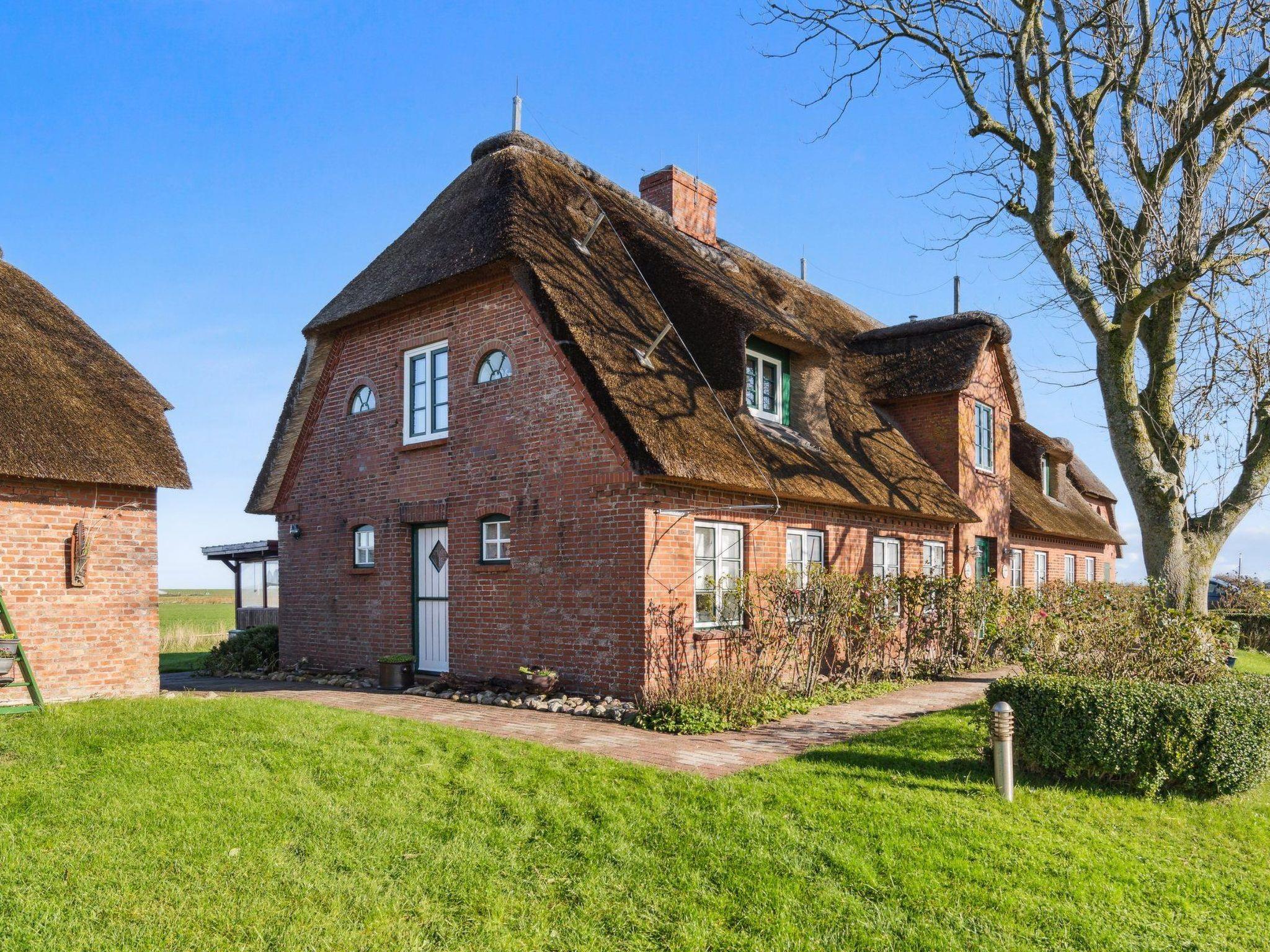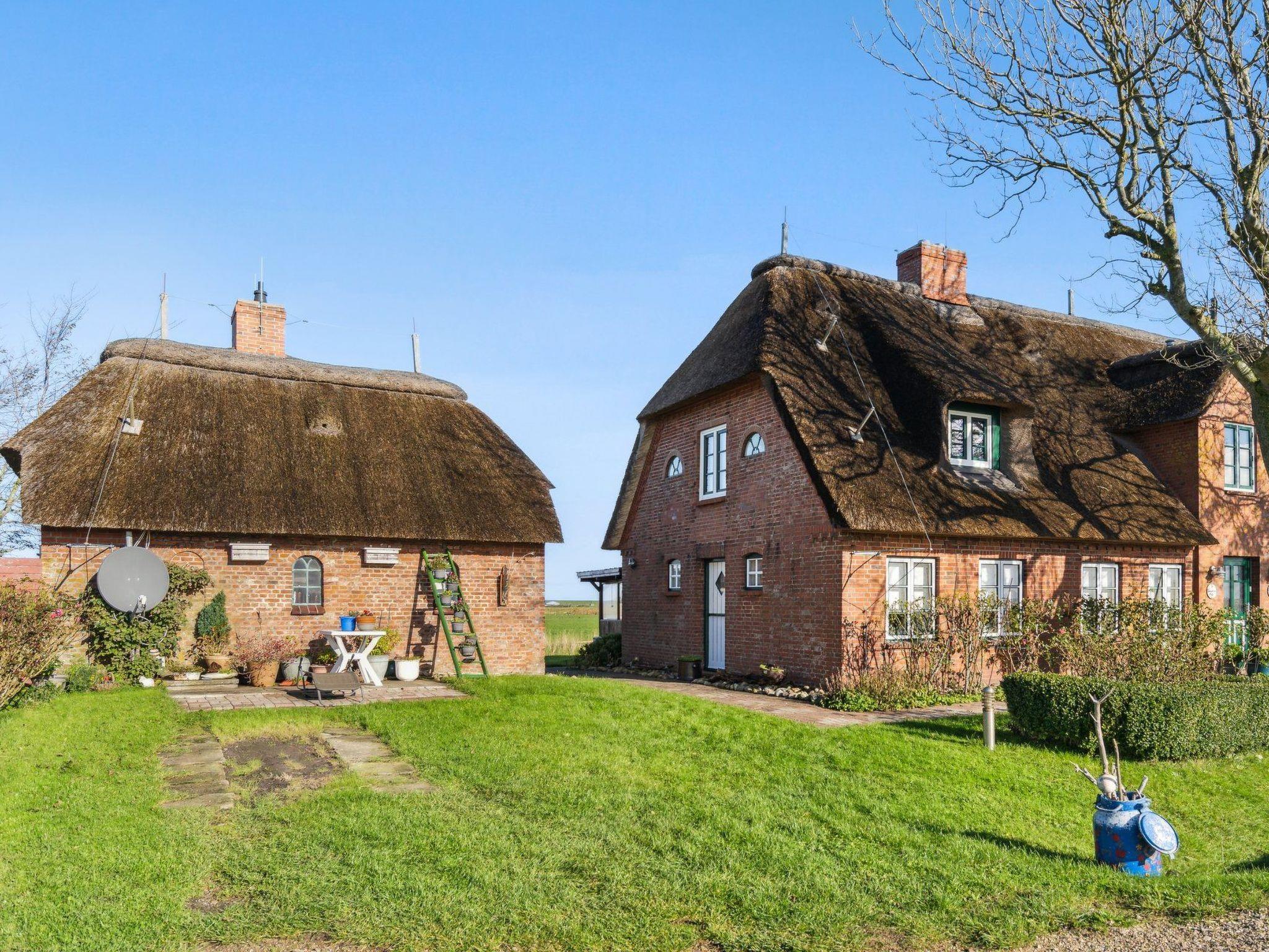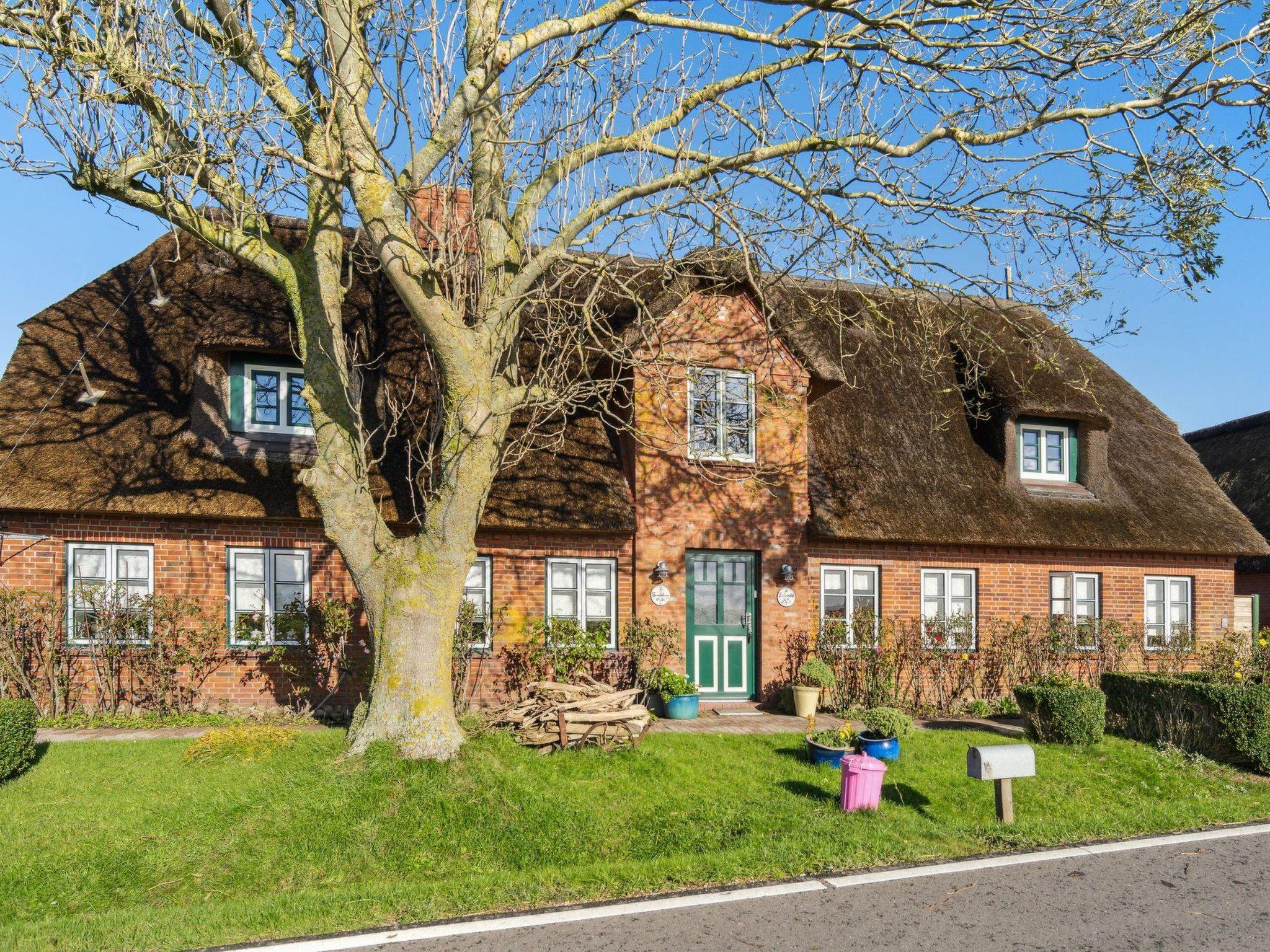 Charmantes Reetdach-Haus auf Pellworm mit Terrasse und Kamin für erholsame Auszeit in der Nordsee.