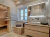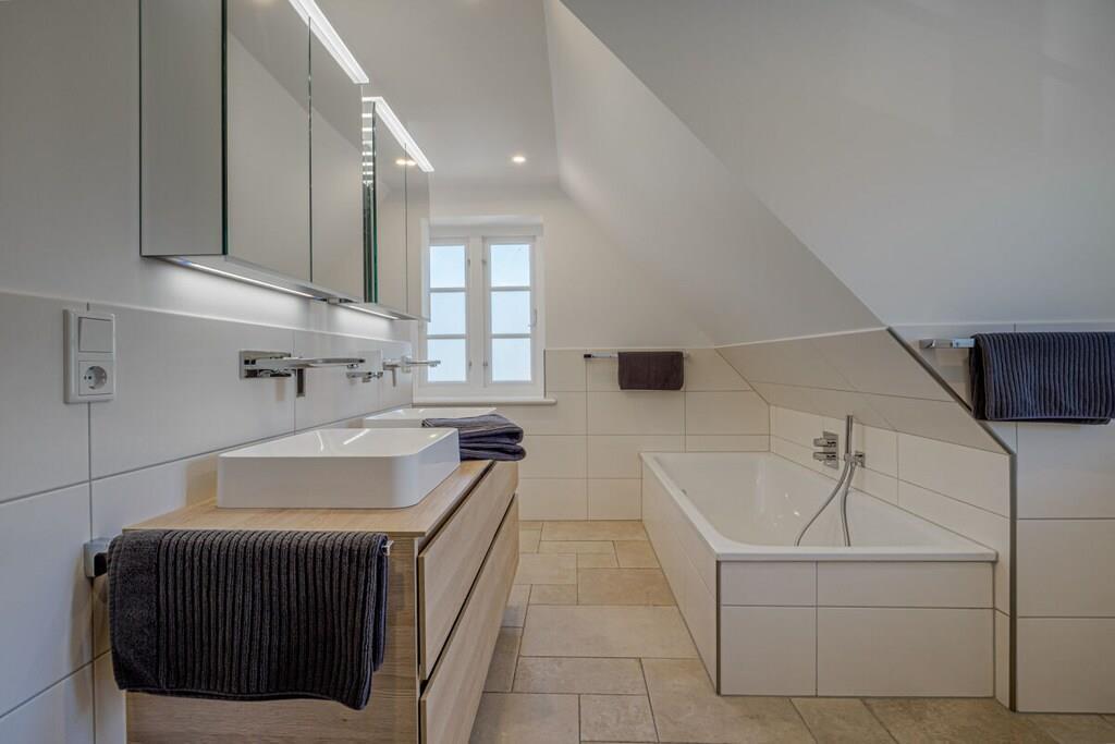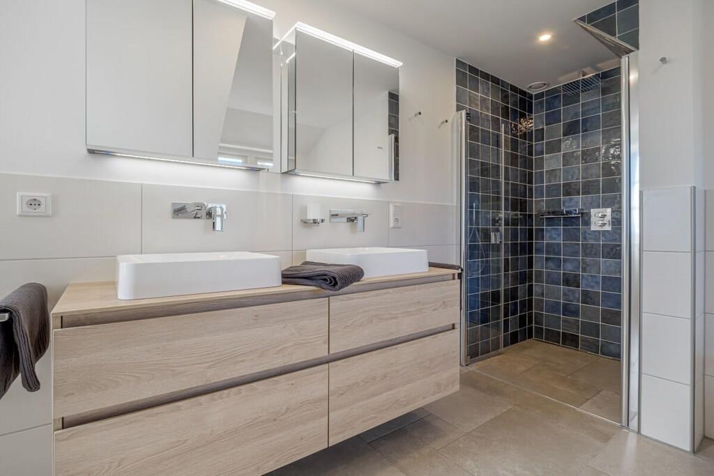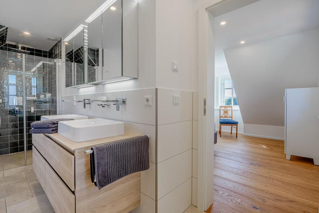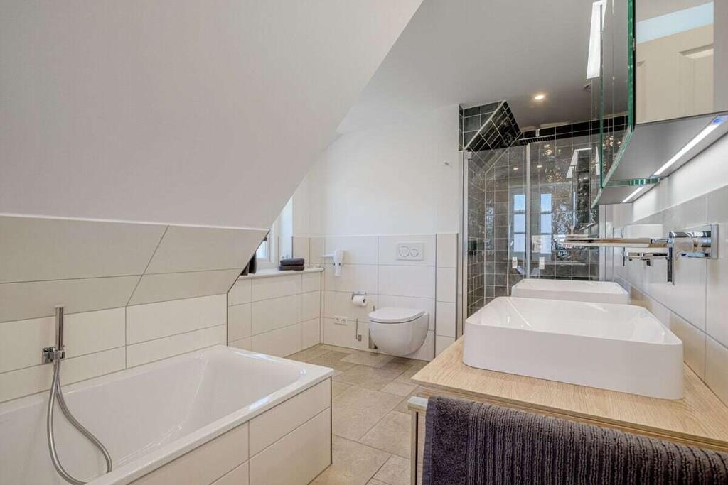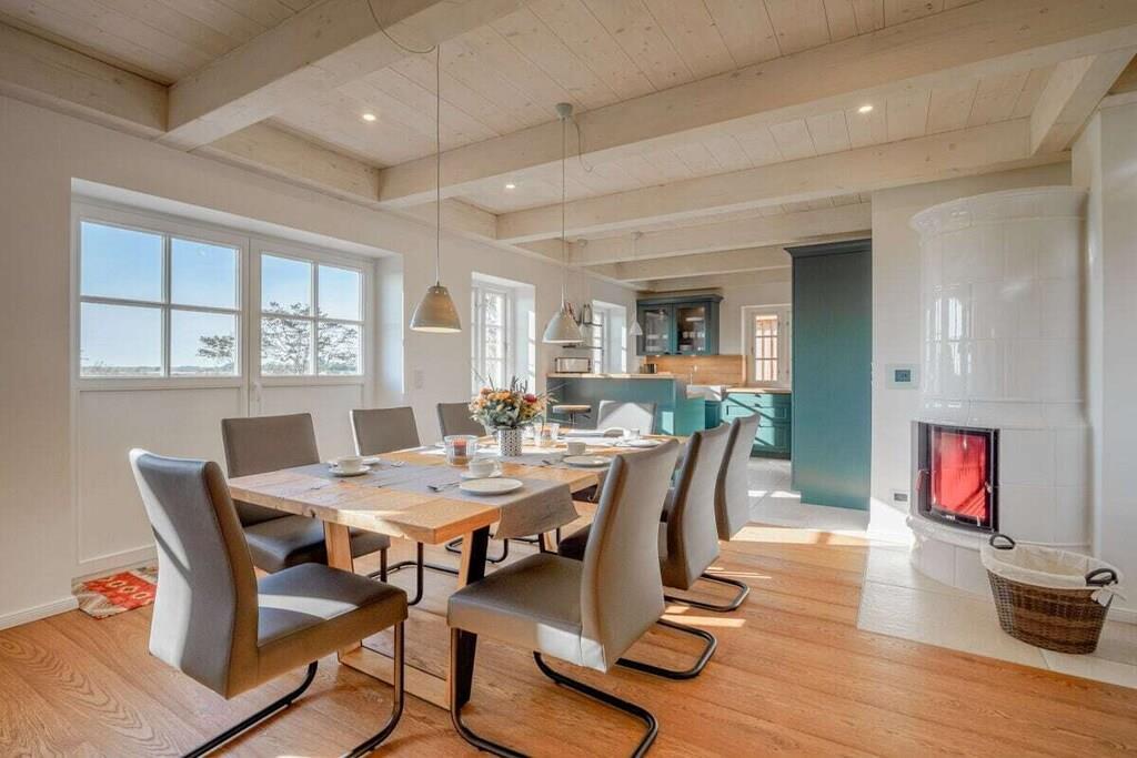 Genießen Sie vom über 40qm großen offenen Wohn-Eßbereich den herrlichen Blick in die Insel. Oder gehen Sie durch die große Verandatür direkt nach draußen in die Natur. Die perfekt eingerichtete Küche und der große Eßplatz lassen jede Mahlzeit zu einem kleinen Fest werden. Auch bei Schietwetter wird es mit Smart TV und schnellem Internet nicht langweilig. In der kalten Jahreszeit entspannen Sie in der hauseigenen Sauna oder lassen sich von der wohligen Wärme des prachtvollen Kachelofen verwöhnen. Eine Fußbodenheizung im ganzen Haus sorgt für gleichmäßige Wärme. Die beiden Schlafzimmer im Obergeschoss sind mit Bad en Suite, ein Schlafzimmer liegt seniorengerecht im Erdgeschoss mit dem Bad direkt gegenüber. Luxuriöse Boxspringbetten sorgen für guten Schlaf.