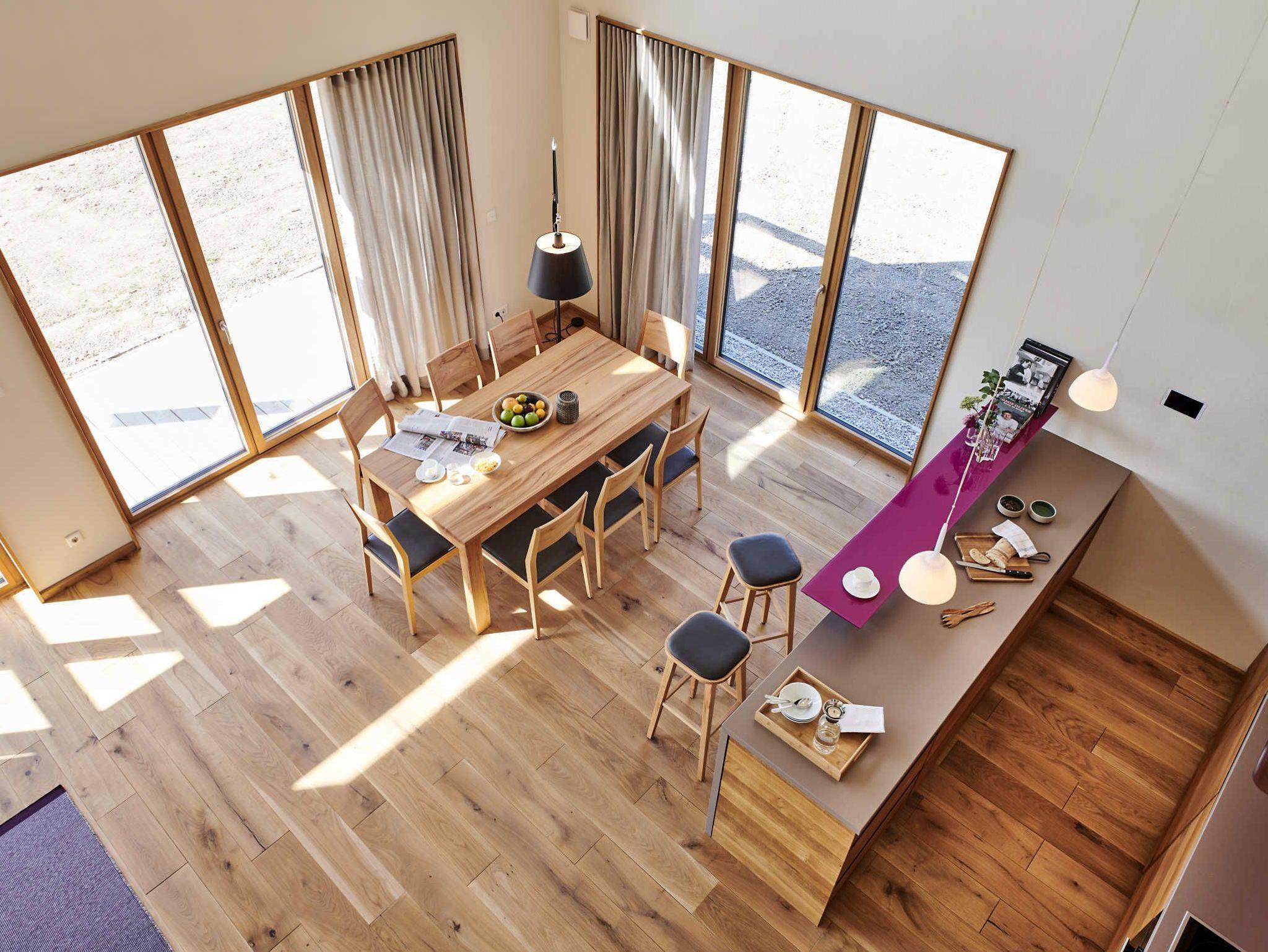 Das Haus besteht fast ausschließlich aus Naturmaterialien wie Holz oder Schafswolle und kommt somit weitestgehend ohne chemisch hergestellte Materialien aus. Zudem verfügt es über eine spezielle Staubsauganlage, die allergene Stoffe aus den Innenräumen direkt nach außen transportiert. Normale Staubsauger würden diese mit der Abluft wieder im Raum verteilen. Auch die Möbel wurden zusammen mit Interieur-Designern eigens für das Resort entwickelt und sind frei von Weichmachern und Lösungsmitteln. Die dadurch sehr gute Raumluftqualität sorgt für ein besonderes Wohlgefühl.