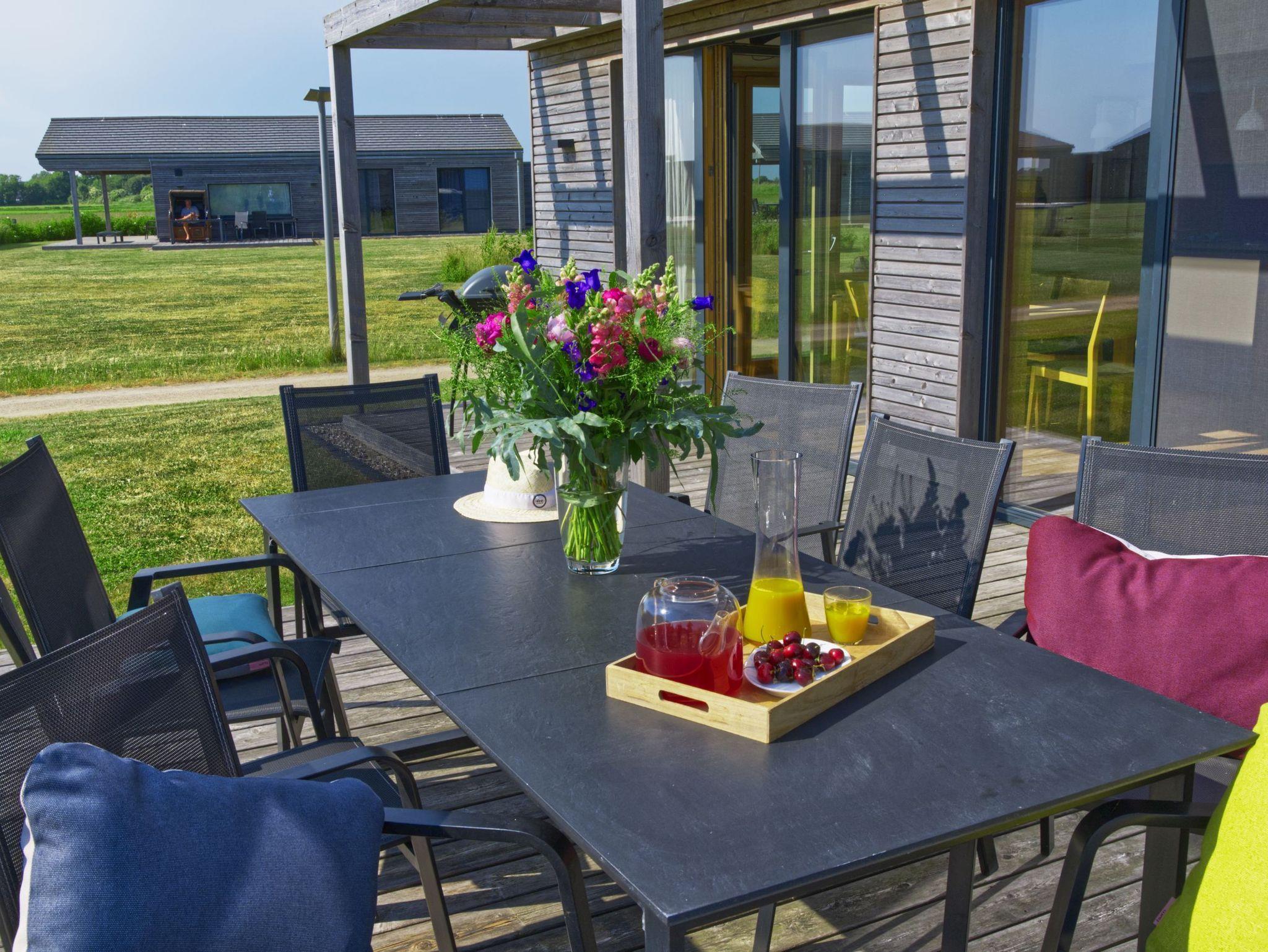 Ihre Mahlzeiten können Sie auch ganz in Ruhe auf der großen Terrassenfläche einnehmen. Ein Terrassentisch und 8 Stühle sind dafür vorhanden. Drei Liegen laden zum ausgiebigen Sonnenbaden ein. Der Garten bietet viel Erholungs- und Spielfläche. Auch in den kühleren Monaten ergänzen sich Natur und Haus perfekt. Machen Sie es sich nach ausgiebigen Deichwanderungen in frischer Meeresluft einfach in der Sauna oder auf dem Sofa gemütlich oder geben Sie sich dem hin, was hier am besten funktioniert: dem gepflegten Nichtstun!