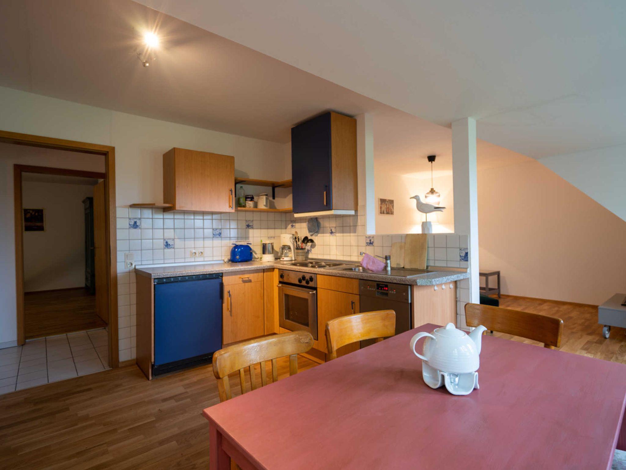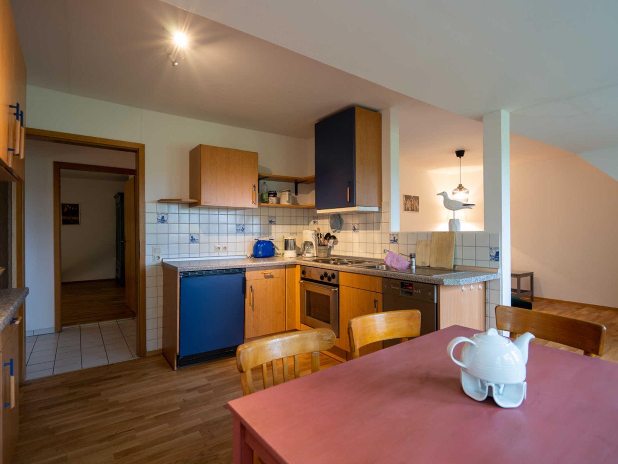 Die Ferienwohnung „Klaar Kimming“ (70qm) ist für 6 Personen eingerichtet. Sie befindet sich im ersten Stock mit einer tollen Aussicht Richtung Süden auf den Hof.