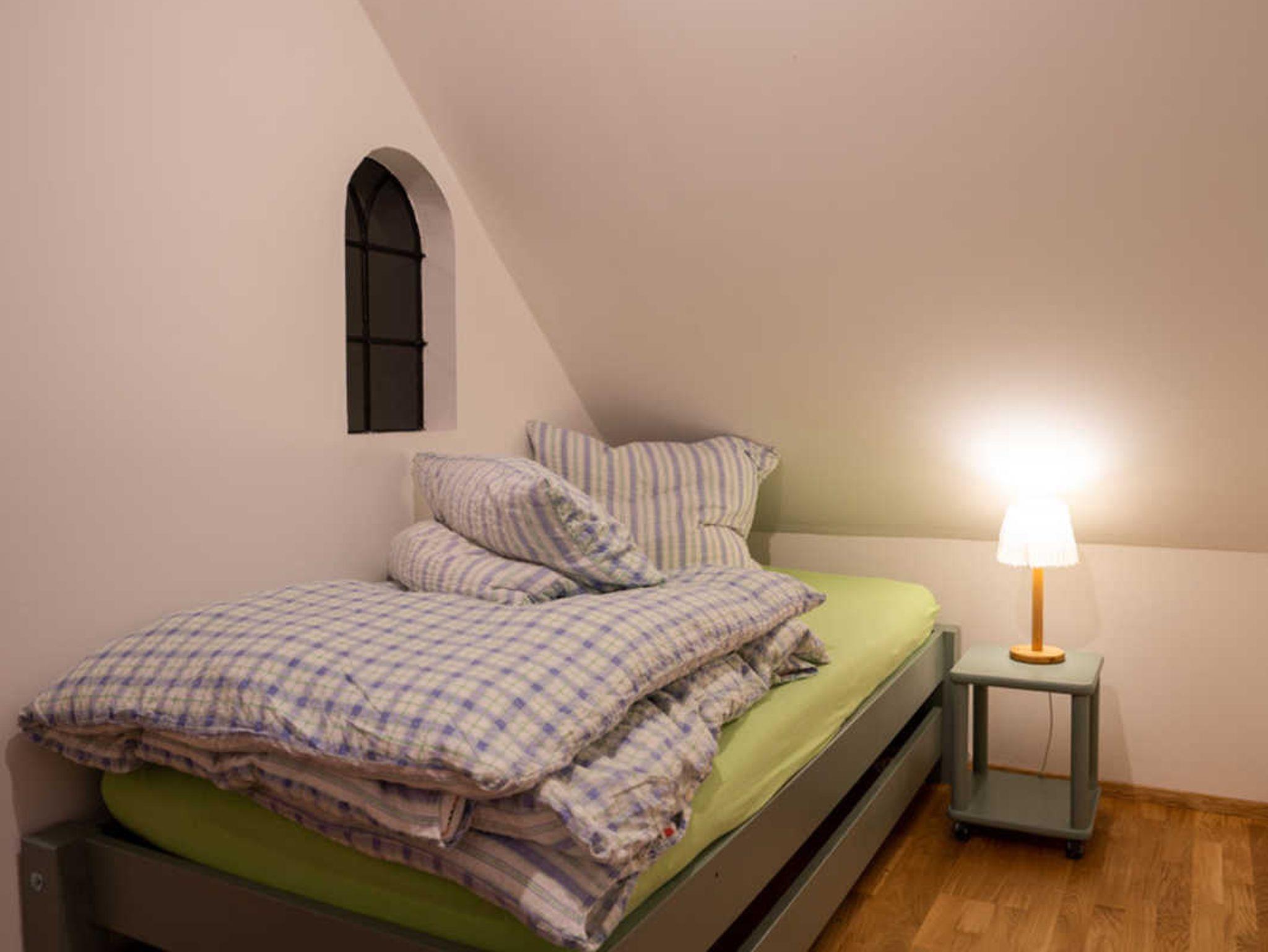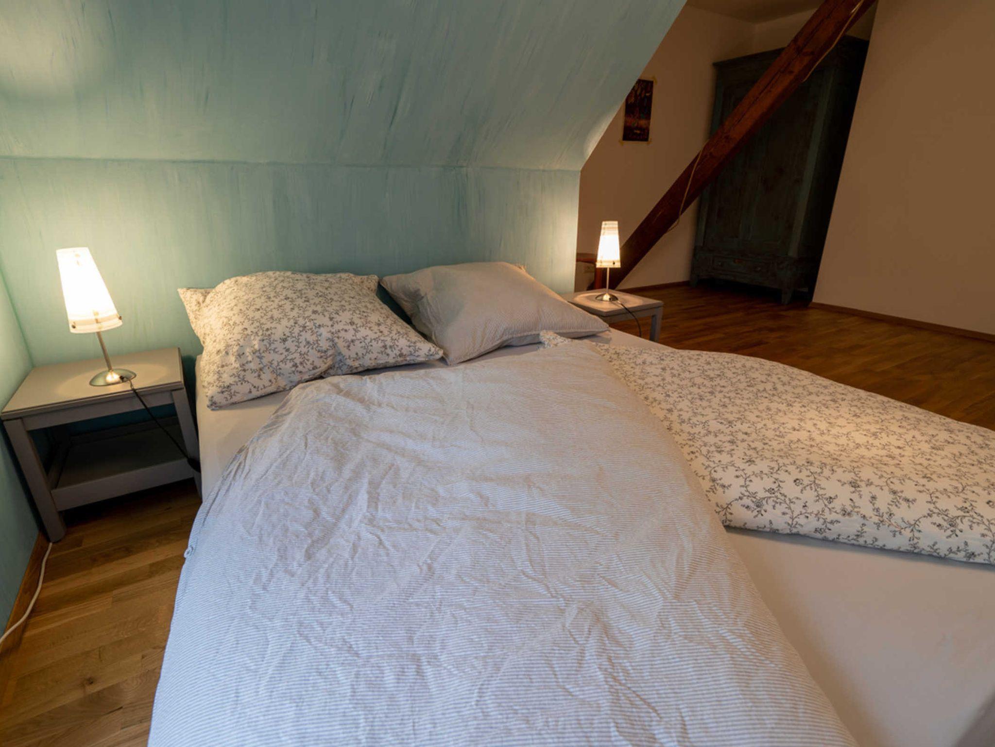 Die Wohnung hat drei Schlafzimmer: ein Schlafraum mit Doppelbett, ein Schlafraum mit Doppelbett und Einzelbett und ein weiterer kleiner Schlafraum mit Einzelbett.