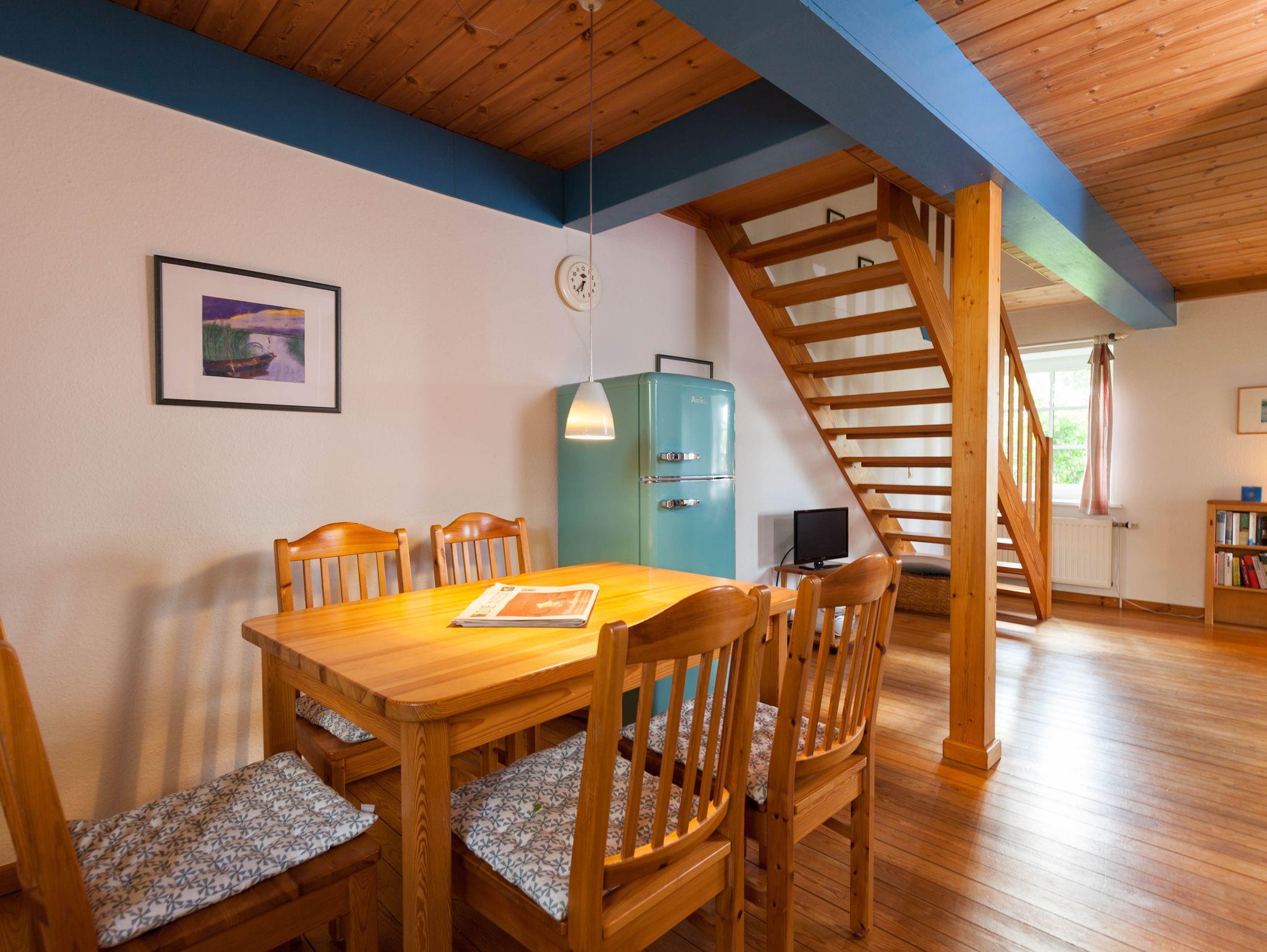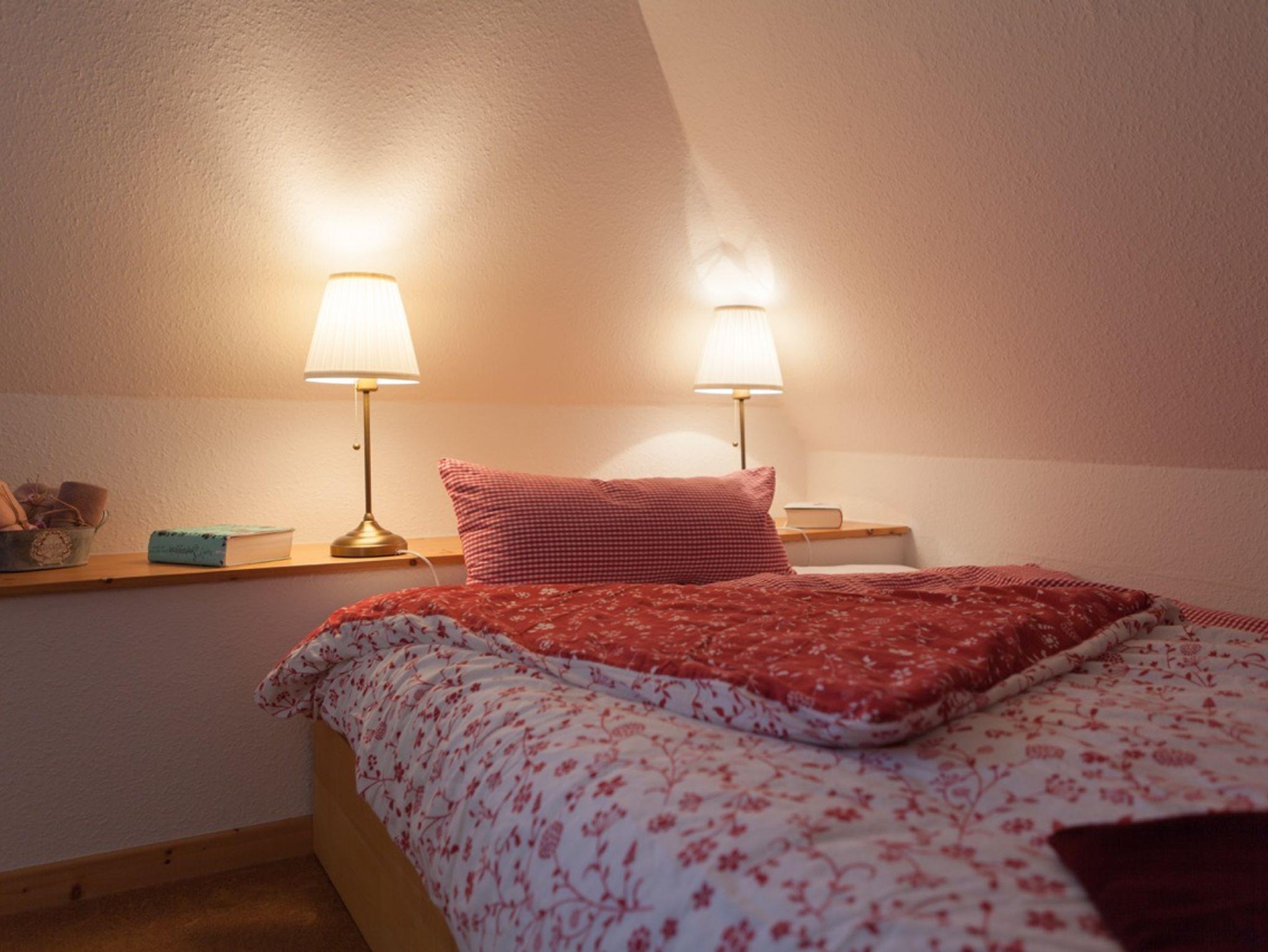 Ferienwohnung Eva-Lotta ist für 4 Personen ausgestattet, wobei Familien mit mehr als zwei Kindern ( bzw. einzelne Erwachsene mit mehr als drei Kindern) herzlich willkommen sind und ohne weitere Zuschläge untergebracht werden. Die Nichtraucher Wohnung ist zweistöckig (Erdgeschoß und Obergeschoß) und hat einen Schlafraum mit Doppelbett (Betten ohne Fußteil) und einen Schlafraum mit zwei Einzelbetten. Zusätzliche Betten wie Babybett und Zustellbett auf Anfrage. Die Küchenzeile ist voll ausgestattet, mit Backofen und Spülmaschine versehen, und mit Essecke und Wohnraum verbunden. WLAN ist vorhanden und kostenlos. Zur Wohnung gehört eine eigene Terrasse. Keine Haustiere.