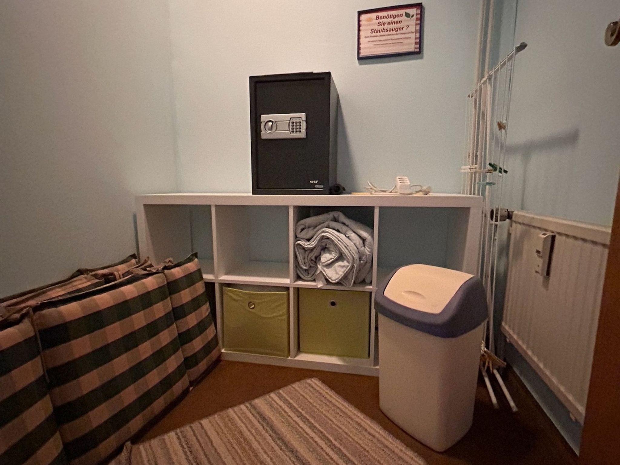 Eine Waschmaschine und ein Wäschetrockner können gegen eine Gebühr genutzt werden.