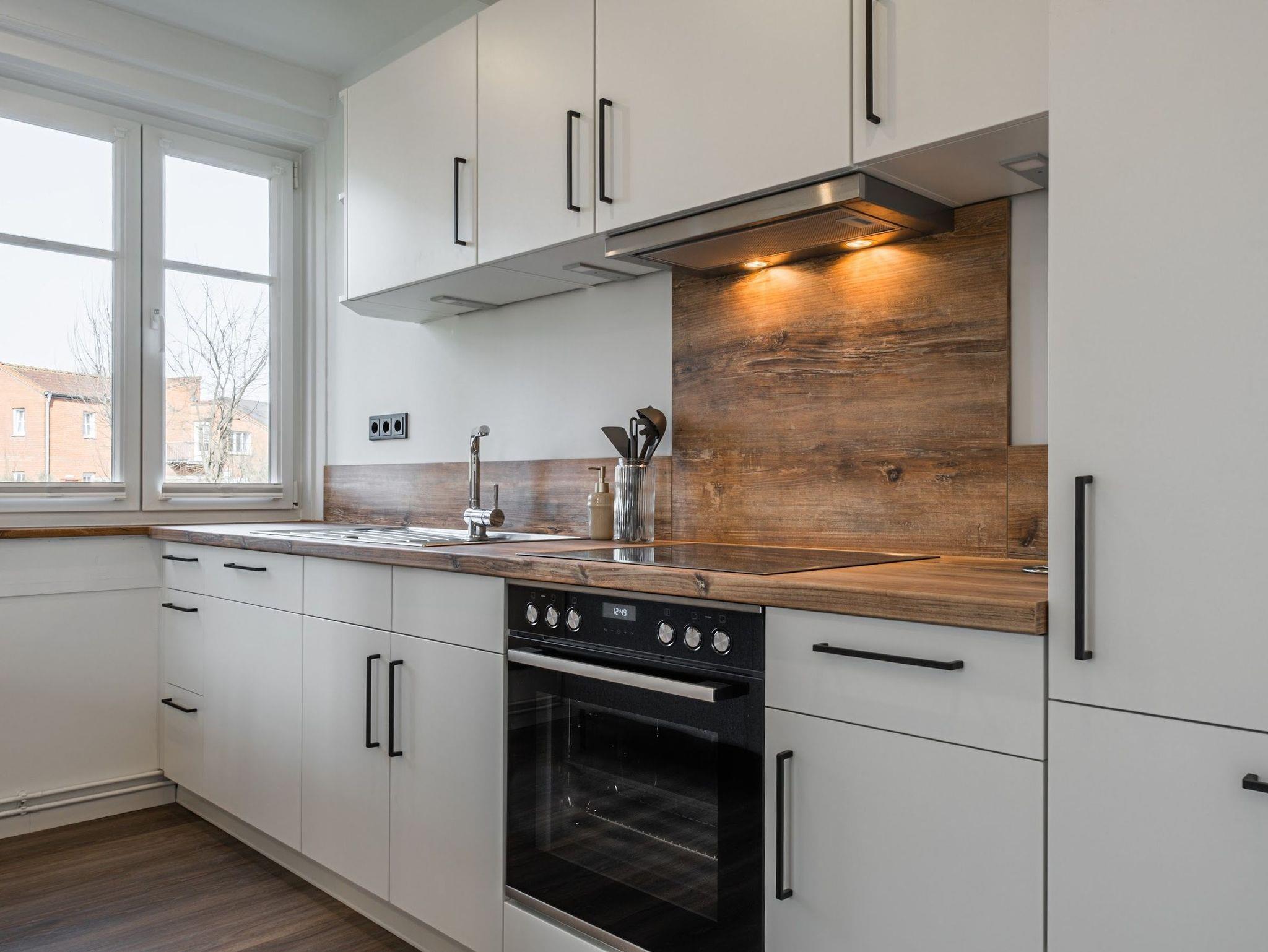 Die seperate neue Küche ist mit einem 4 Platten Cerankochfeld, mit einem Backofen, einer Mikrowelle, einem Kühlschrank, einer Kaffeemaschine, einem Toaster, einem Wasserkocher und Geschirrspüler voll ausgestattet. WLAN ist vorhanden.