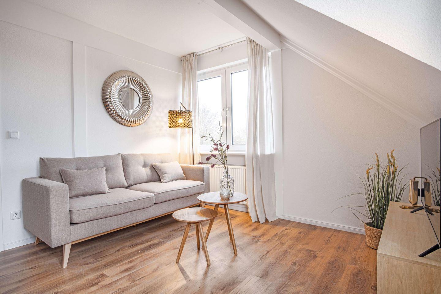 Gemütliche Dachgeschosswohnung 'Friesenliebe aus Pellworm' bietet modernen Komfort und nordischen Charme in ruhiger Lage.