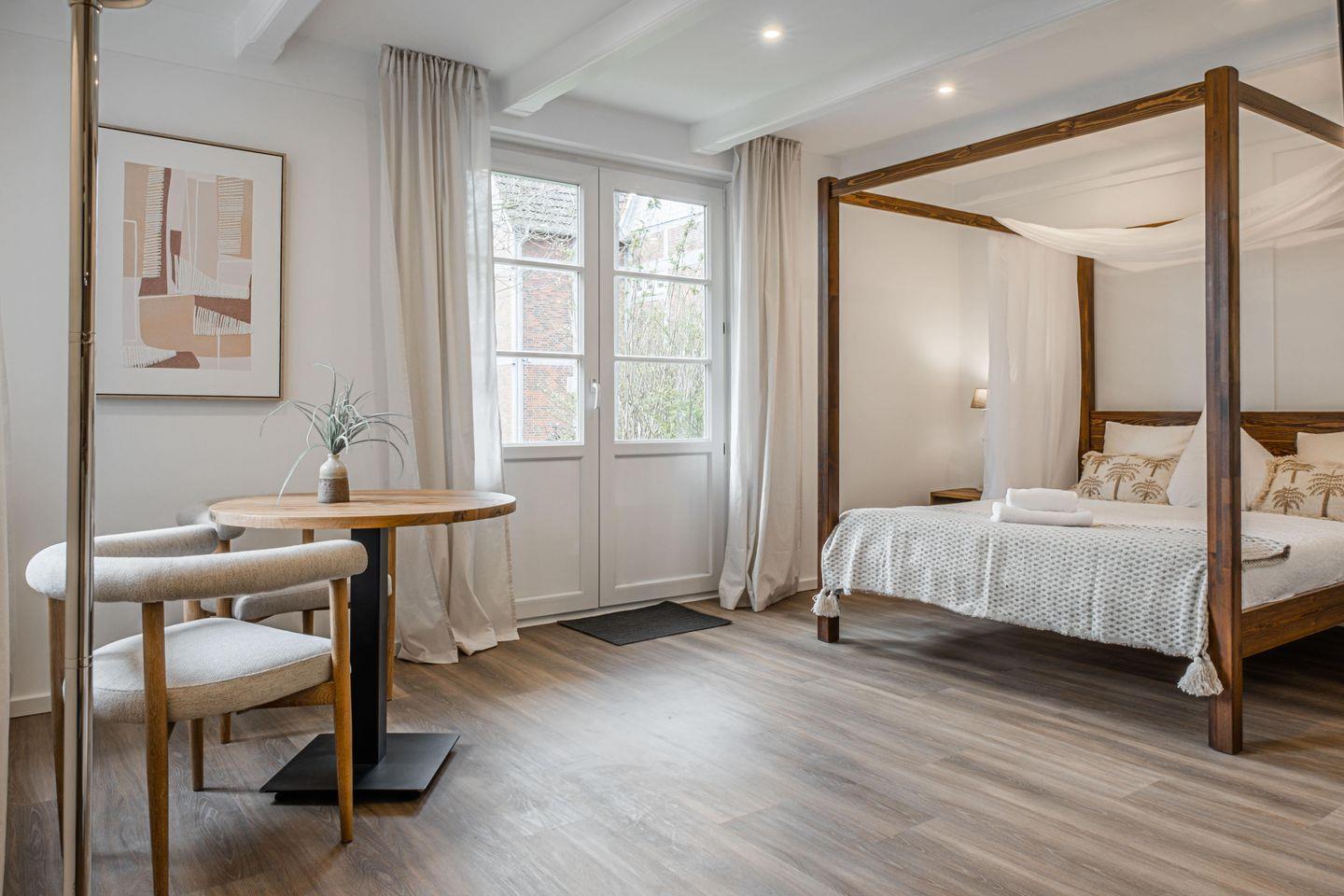 Der helle Wohn- und Schlafraum ist mit einem komfortablen Doppelbett, einem Esstisch sowie einem Fernseher mit SAT-Anschluss ausgestattet – ideal zum Ausspannen nach einem erlebnisreichen Tag. WLAN steht Ihnen selbstverständlich kostenlos zur Verfügung. Die moderne Küchenzeile aus dem Jahr 2022 lässt keine Wünsche offen: Ein Cerankochfeld mit vier Platten, Backofen, Kühlschrank, Geschirrspüler, Kaffeemaschine, Toaster und Wasserkocher stehen bereit für kleine und große Kochideen.