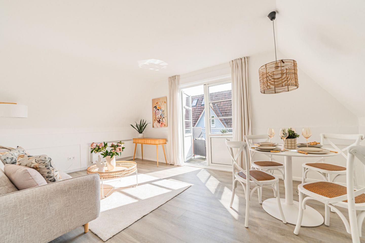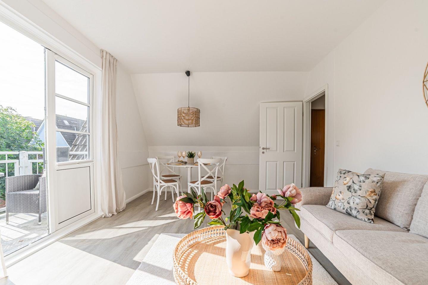 Komfortable Ferienwohnung auf Pellworm mit Balkon, Gartenblick und moderner Ausstattung für erholsame Tage am Meer.