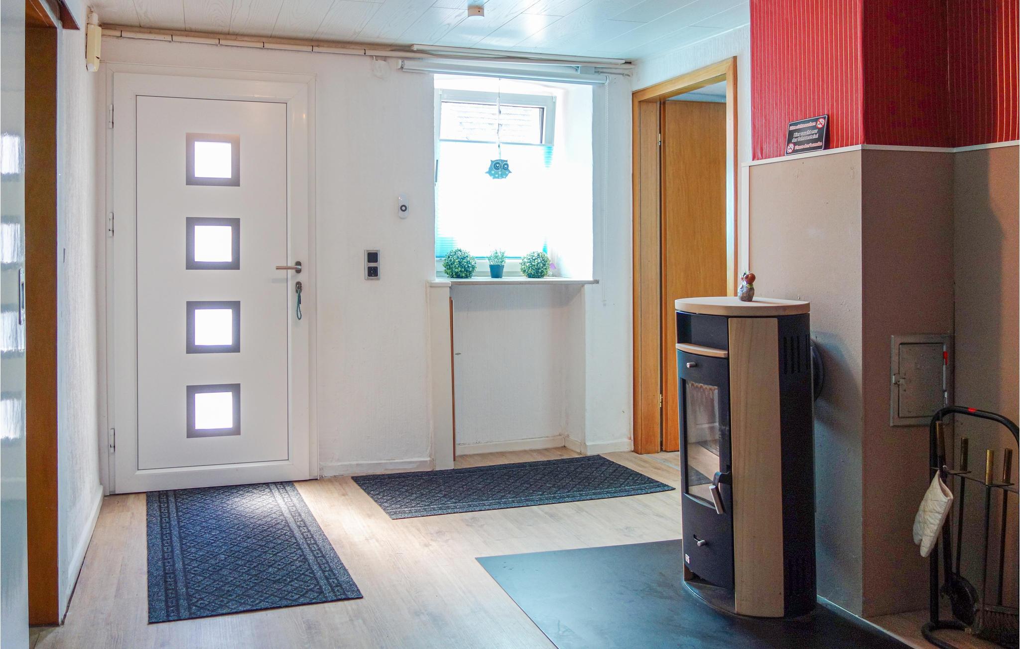 Das restaurierte Ferienobjekt verfügt im Erdgeschoss über ein Schlafzimmer und ein Kinderzimmer. Im Eingangsbereich steht ein Kaminofen. Auf der ersten Etage finden Sie die weitere Schlafzimmer, das Bad, das Wohnzimmer und die geräumige Küche vor. Die Küche ist vollständig ausgestattet, auch eine Senseo-Kaffeemaschine ist hier vorhanden (Pads bitte selbst mitbringen). Neben dem Objekt ist ein abschließbarer Raum, wo Sie Fahrräder unterstellen können. Hier stehen auch die Waschmaschine und der Trockner.