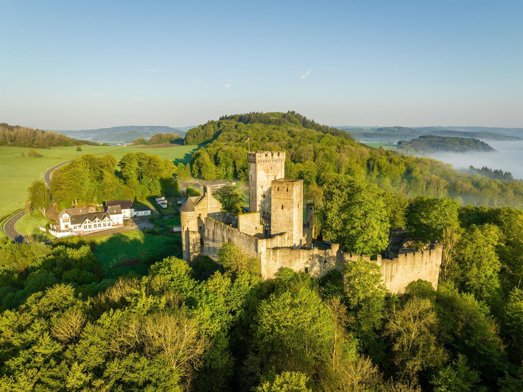 Schäferkarren im Adler- und Wolfspark Kasselburg, Burgblick