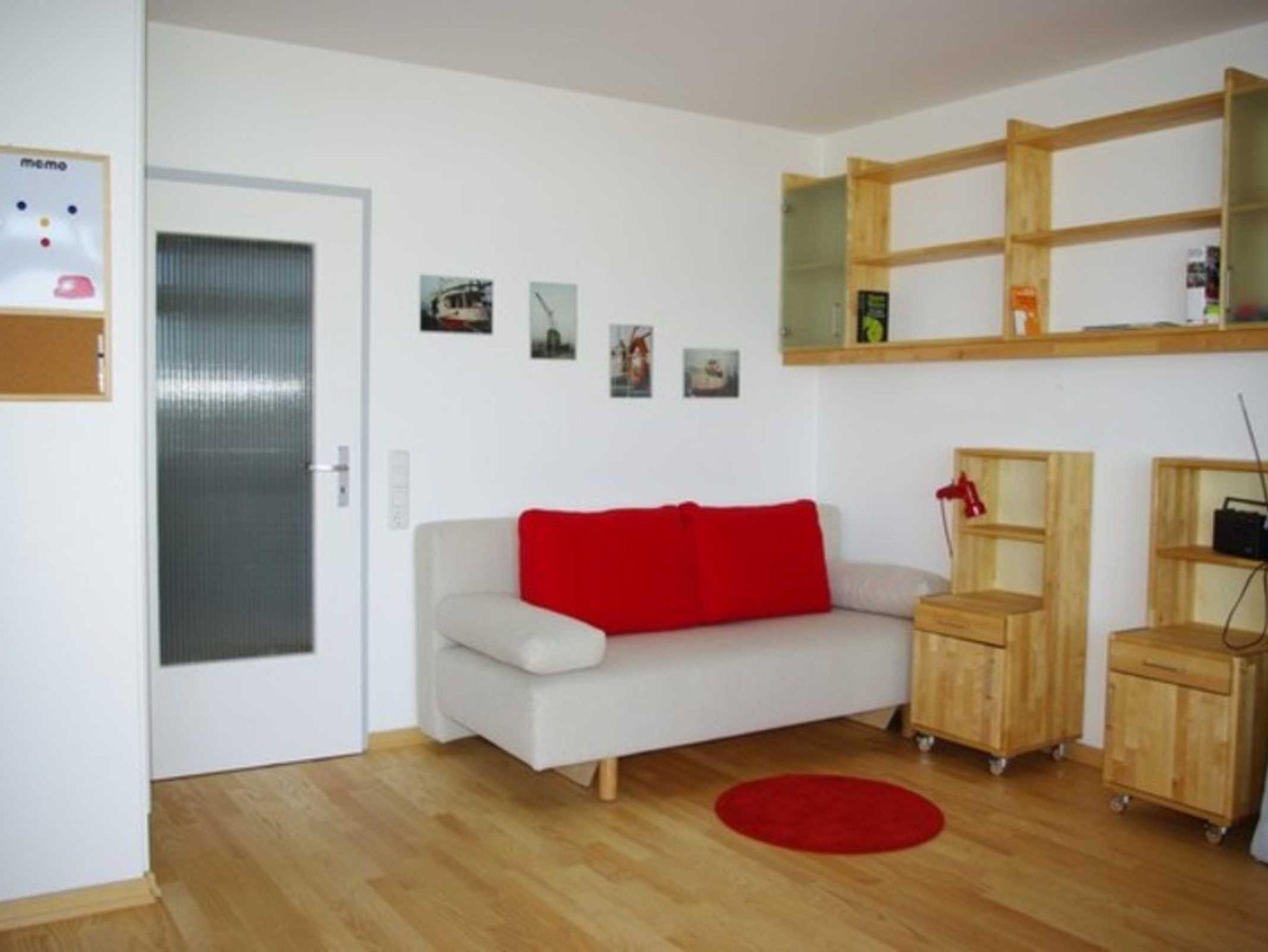Die variabel möblierte Nichtraucherwohnung im 10. Stock verfügt über einen Balkon zum Südosten. Der Wohn-/Schlafbereich ist mit Parkett ausgelegt. Hier gibt es eine Schlafcouch (160 x 200 cm) und ein