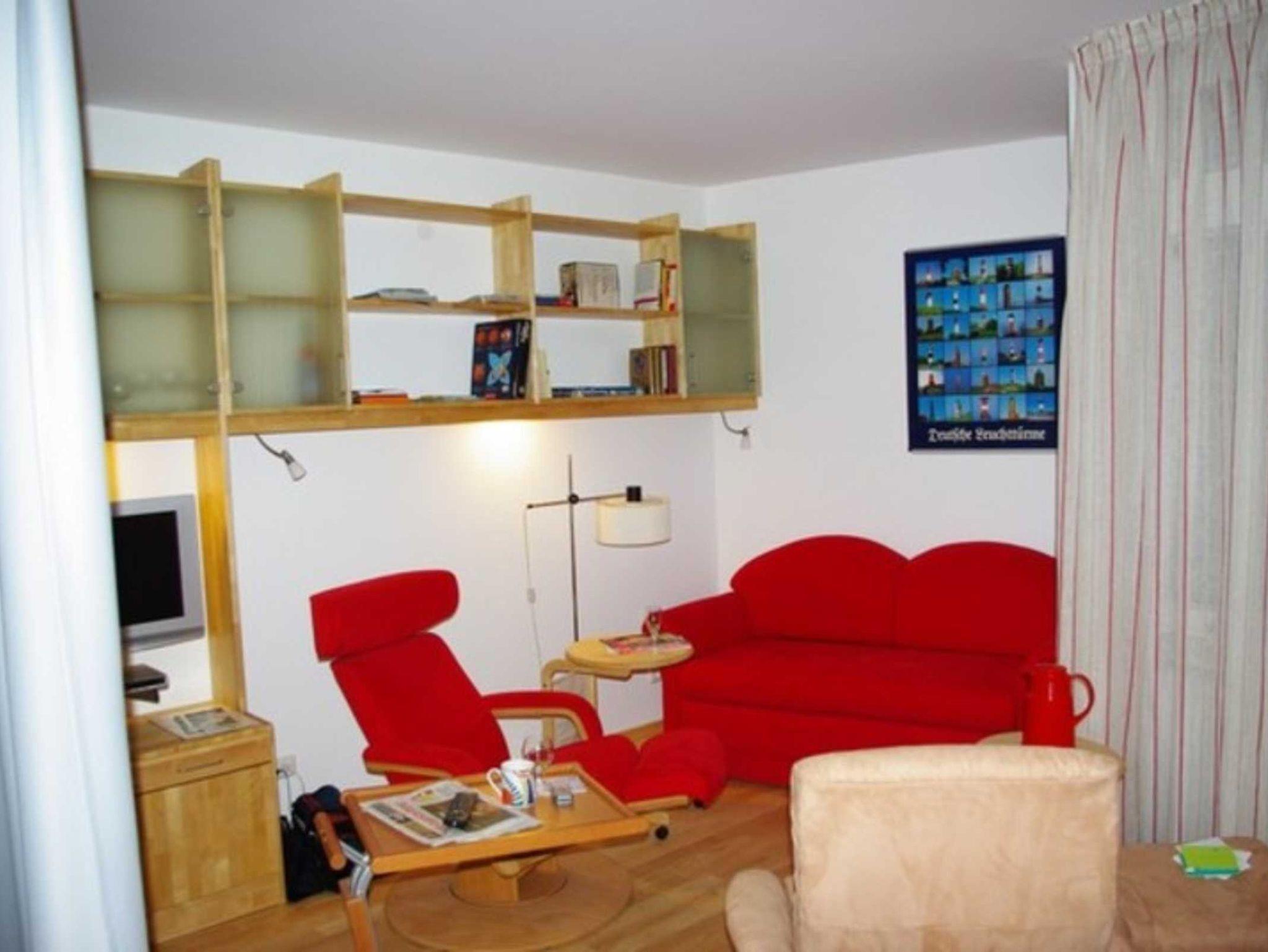 Schlafsofa (140 x 200 cm) sowie einen Essbereich mit Ausziehtisch. Selbstverständlich gehören TV, Radio und CD Player zur Ausstattung. Die offene Küchenzeile ist mit einem Ceranfeld, Backofen und Mikrowelle ausgestattet. Im Bad befindet sich eine barrierefreie Dusche, WC mit Bidet-Funktion und natürlich ein Fön.