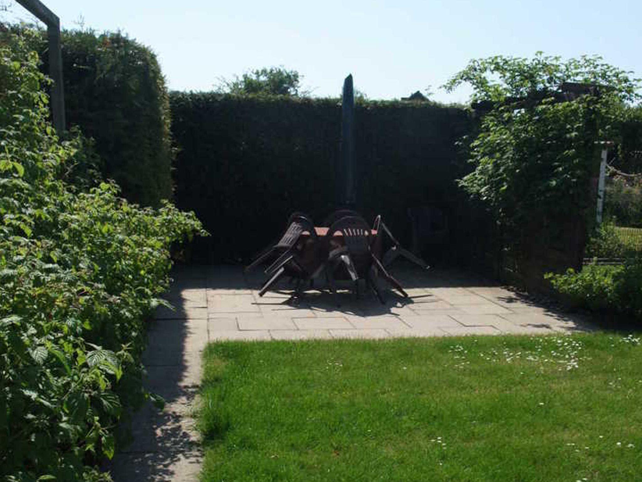Vom Wohnraum aus geht es auf die möblierte Loggia. Mitgebrachte Fahrräder können untergestellt werden. Am Haus gibt es eine gemütliche Gartenecke mit Grillmöglichkeit.