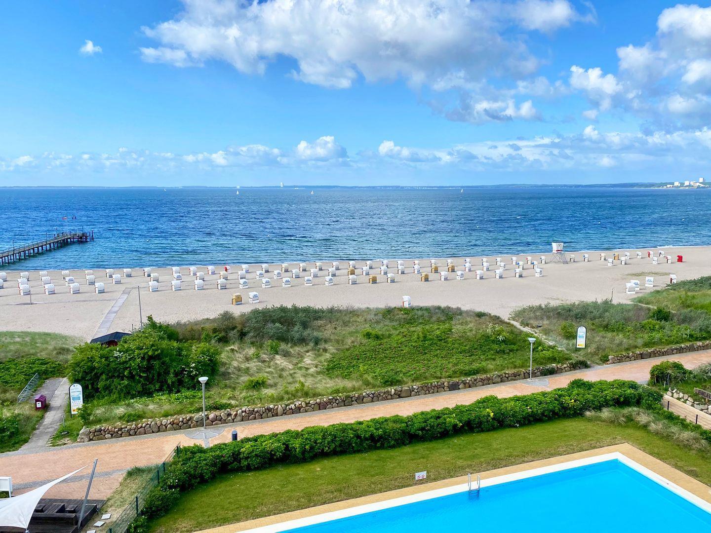 Moderne Meerblick-Wohnung mit Balkon, Sauna und Pool direkt am Strand von Pelzerhaken.