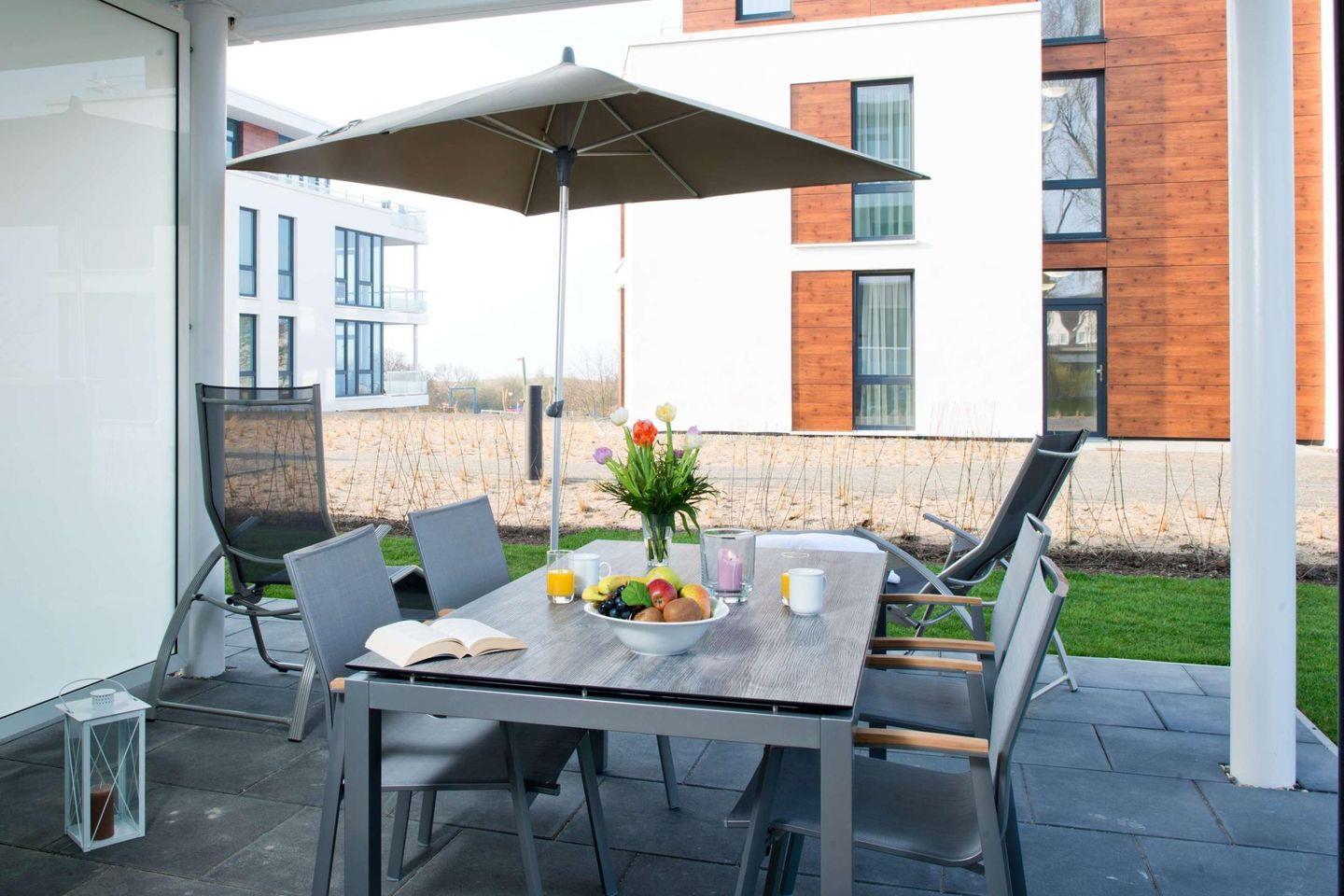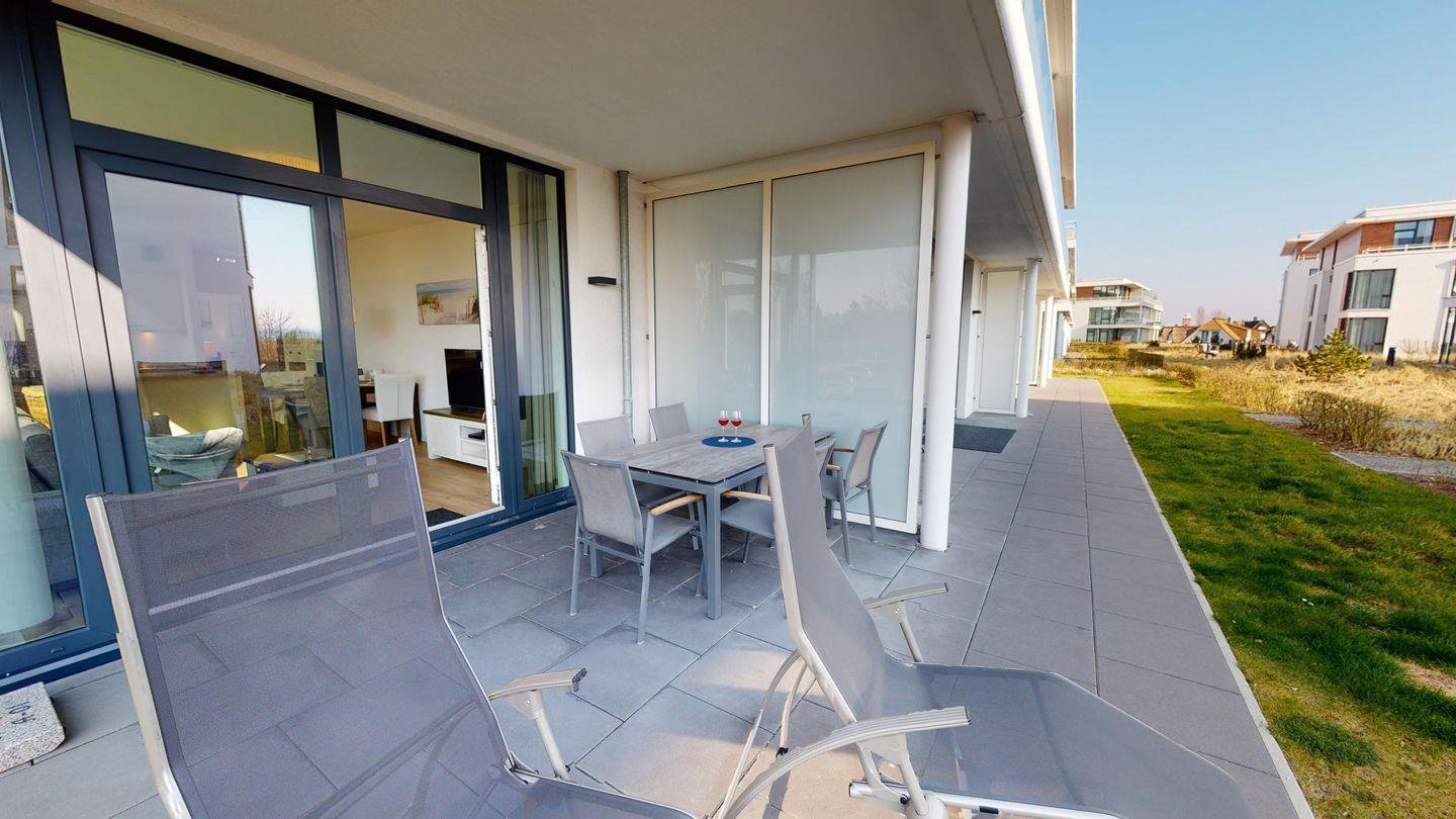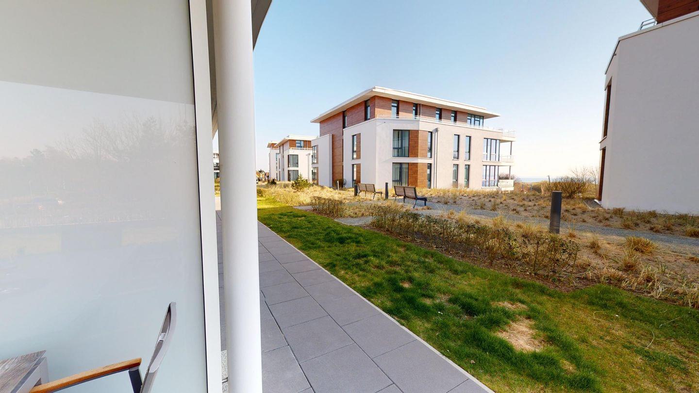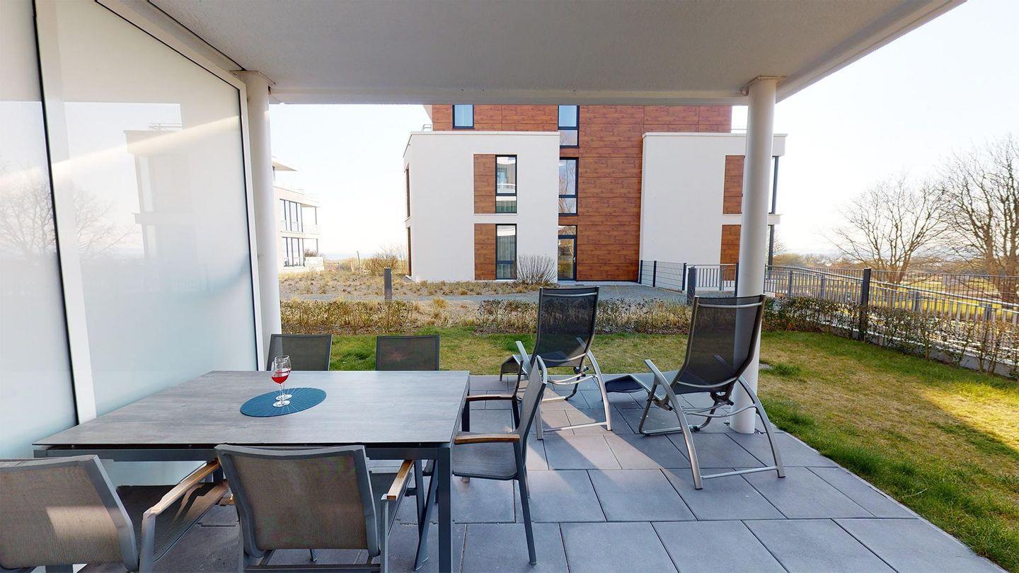 Moderne Ferienwohnung A-01 in Strandlage mit zwei Bädern, Terrasse und Meerblick