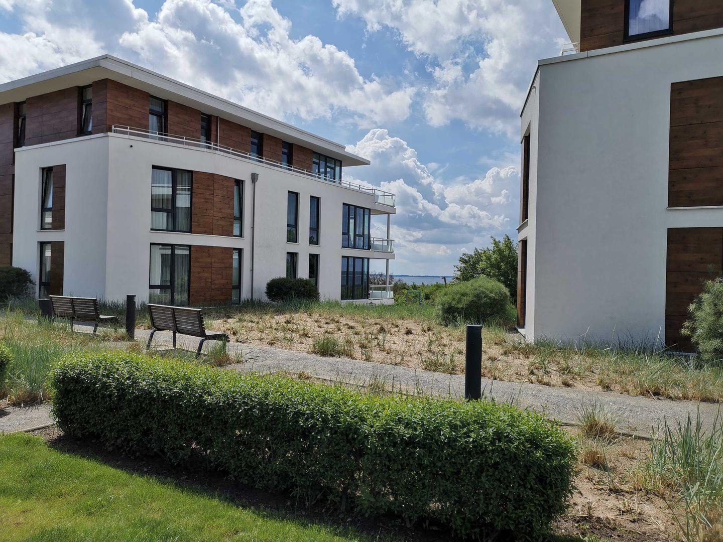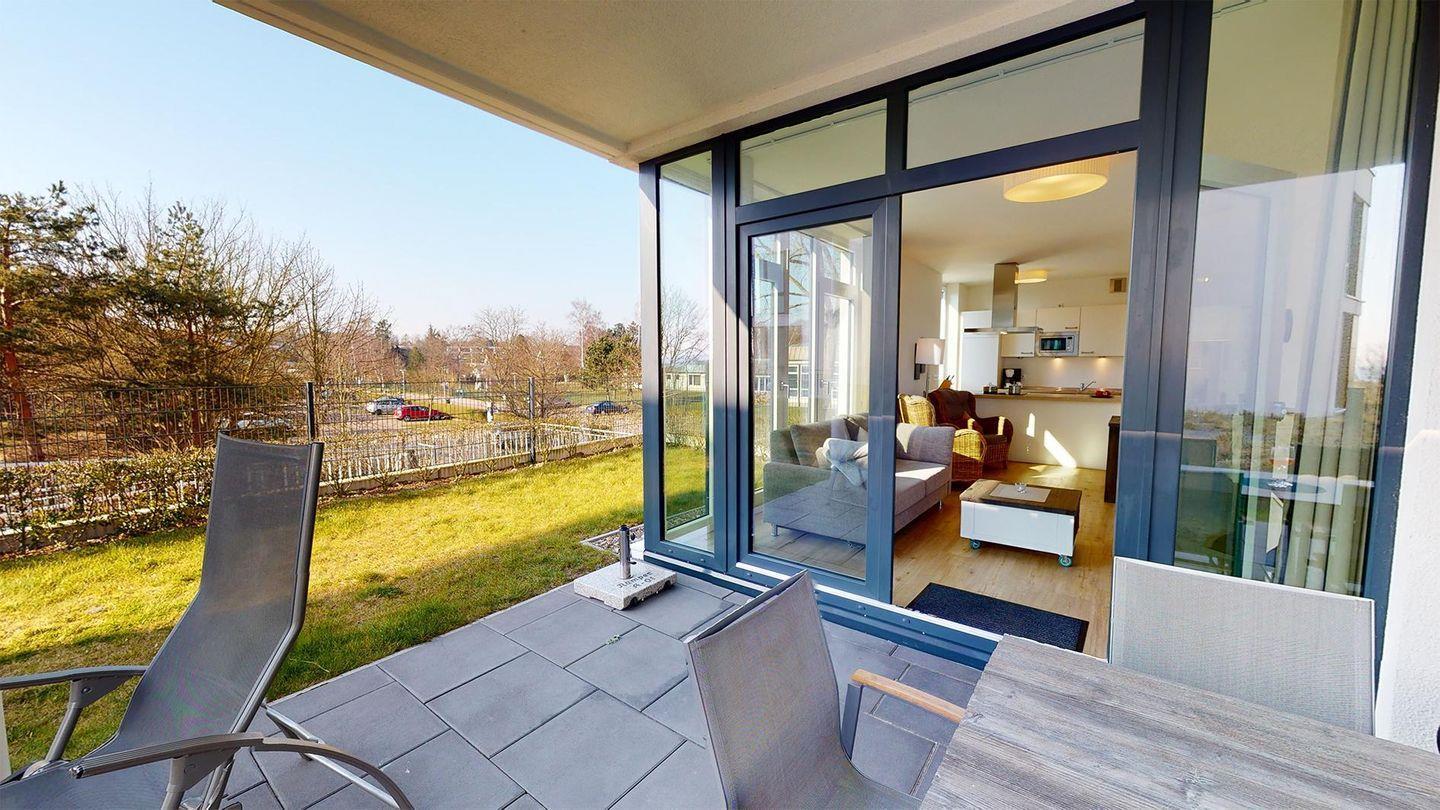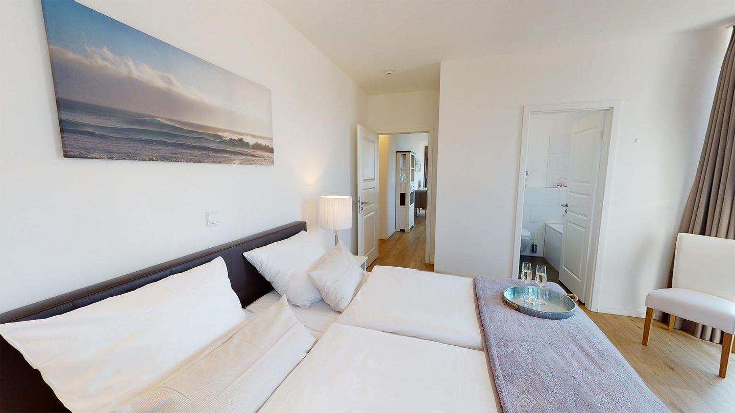 Moderne Ferienwohnung A-01 in Strandlage mit zwei Bädern, Terrasse und Meerblick