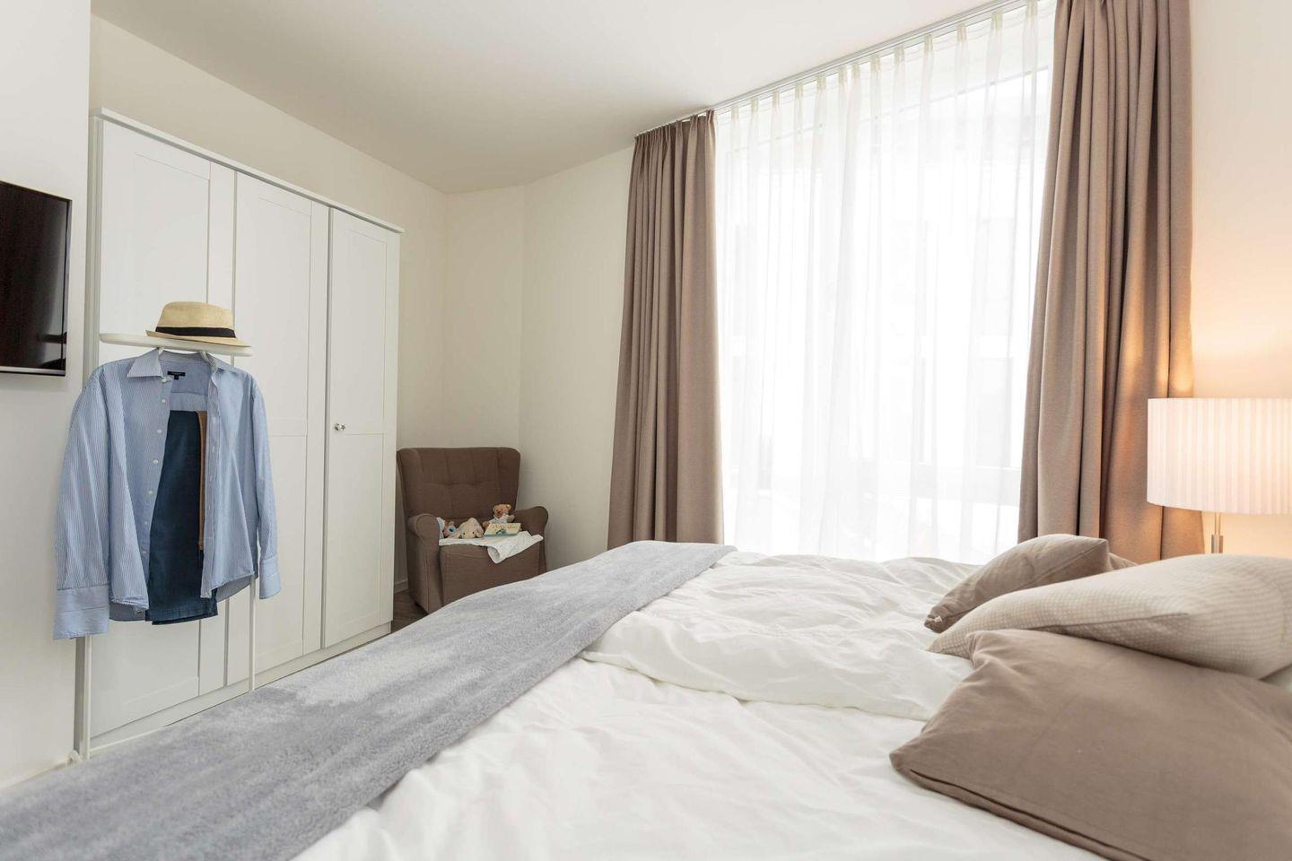 Das 3-Zimmer-Apartment befindet sich im 1. Obergeschoss des Hauses D und bietet Platz für bis zu 4 Personen. Ihr Auto können Sie bequem auf dem zur Wohnung gehörenden Tiefgaragenstellplatz parken. Sie erreichen das Apartment entweder mit dem Aufzug oder über die Treppe.