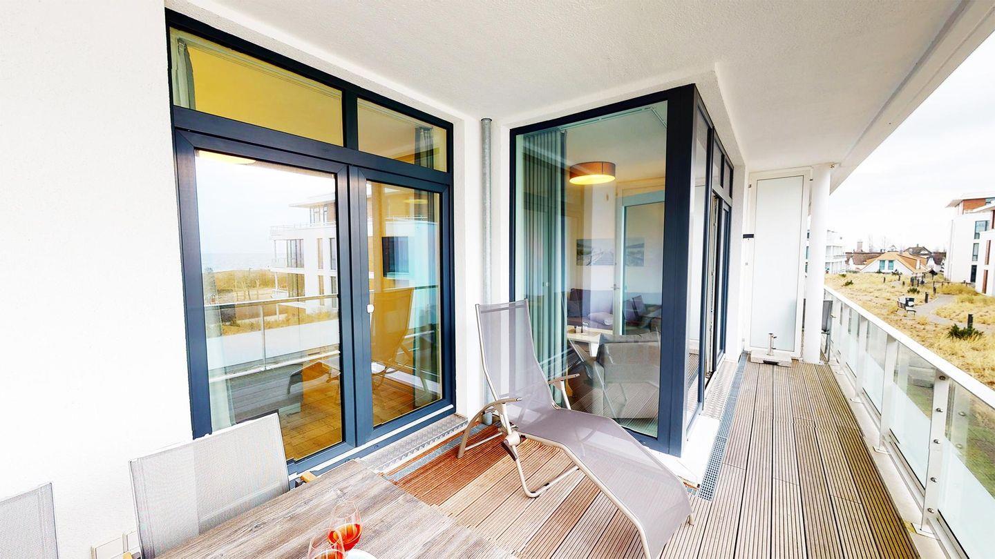 Modernes Apartment mit Meerblick und Balkon in Pelzerhaken an der Ostsee, nur wenige Schritte vom Strand entfernt.