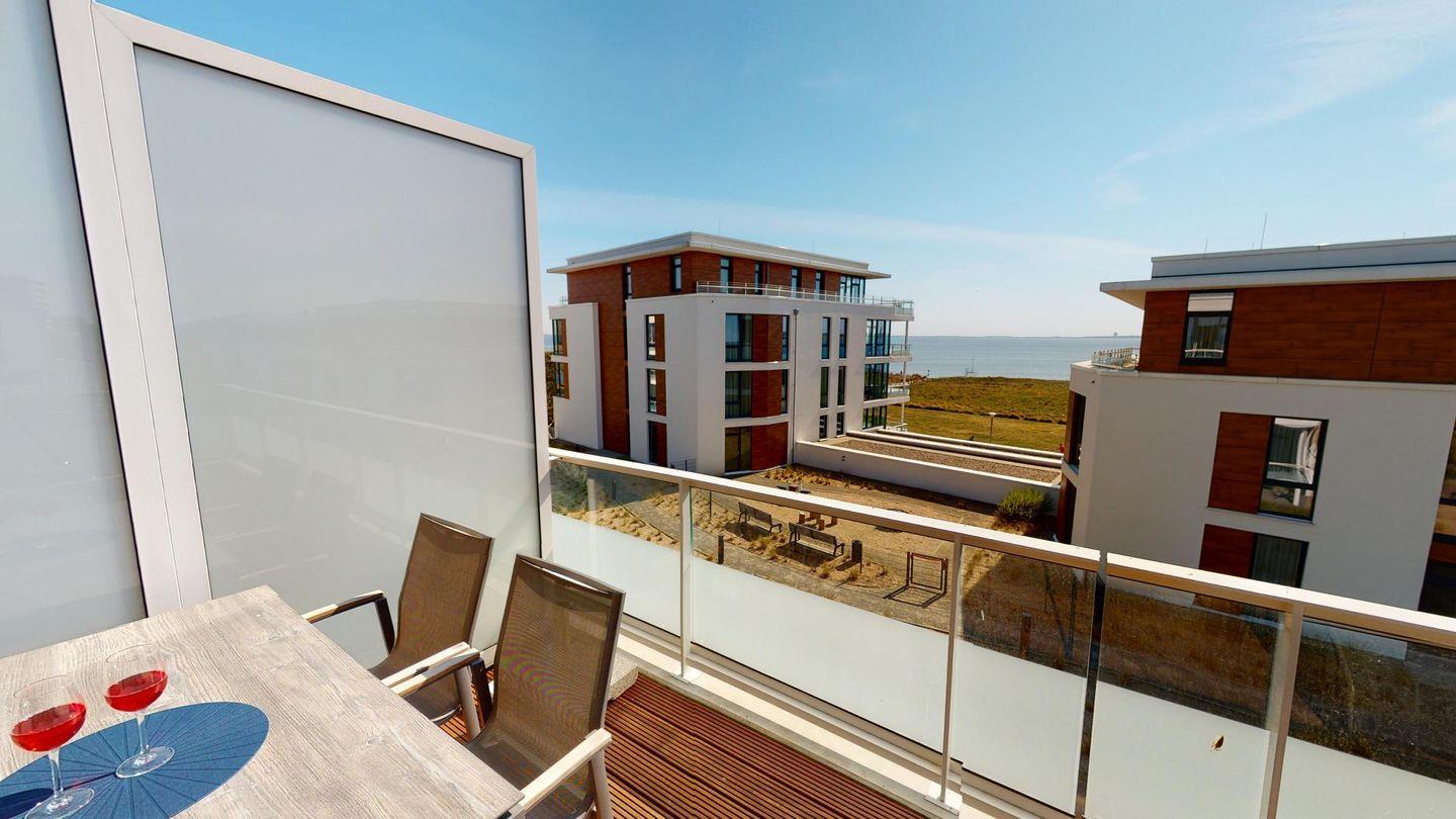 Luxuriöses Penthouse in Pelzerhaken mit Balkon und eingeschränktem Meerblick, nur wenige Schritte vom Strand entfernt.