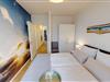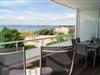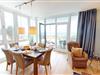 Doch das Herzstück des Apartments wartet noch auf Sie - der Wohnbereich! Dieser verfügt über eine offene, moderne Einbauküche, einen schönen Essplatz mit sechs Stühlen und eine gemütliche Sofaecke. Aus dem Wohnzimmer genießen Sie einen tollen Meerblick. Sie haben somit die Möglichkeit den Blick aus der großen Fensterfront zu genießen oder den Tag mit einem spannenden Film, auf dem großen Flachbildfernseher ausklingen zu lassen! Den schönen Balkon erreichen Sie außerdem über den Wohnbereich. Zwei Sonnenliegen und ein Tisch mit sechs Sitzplätzen warten auf Sie!